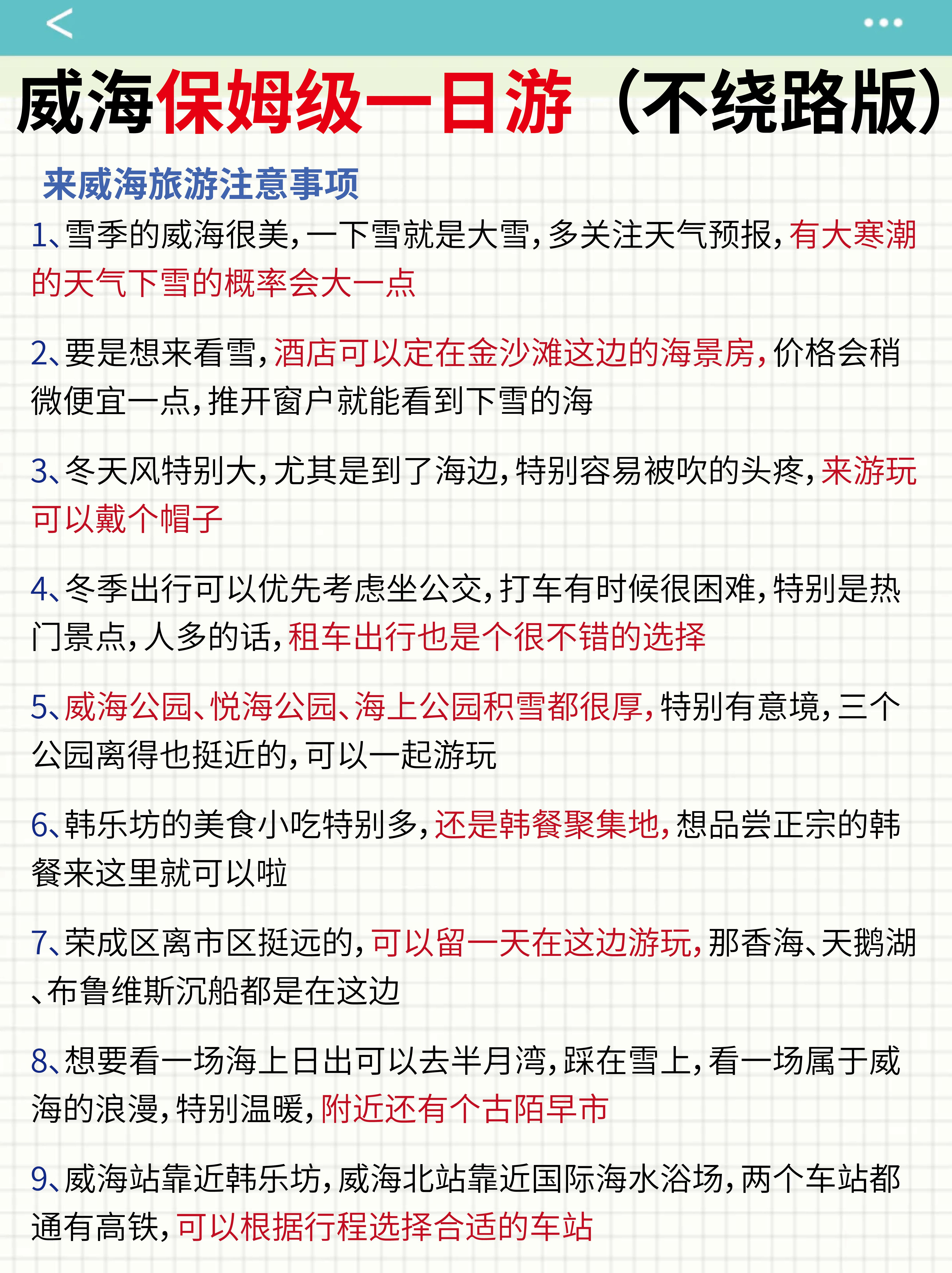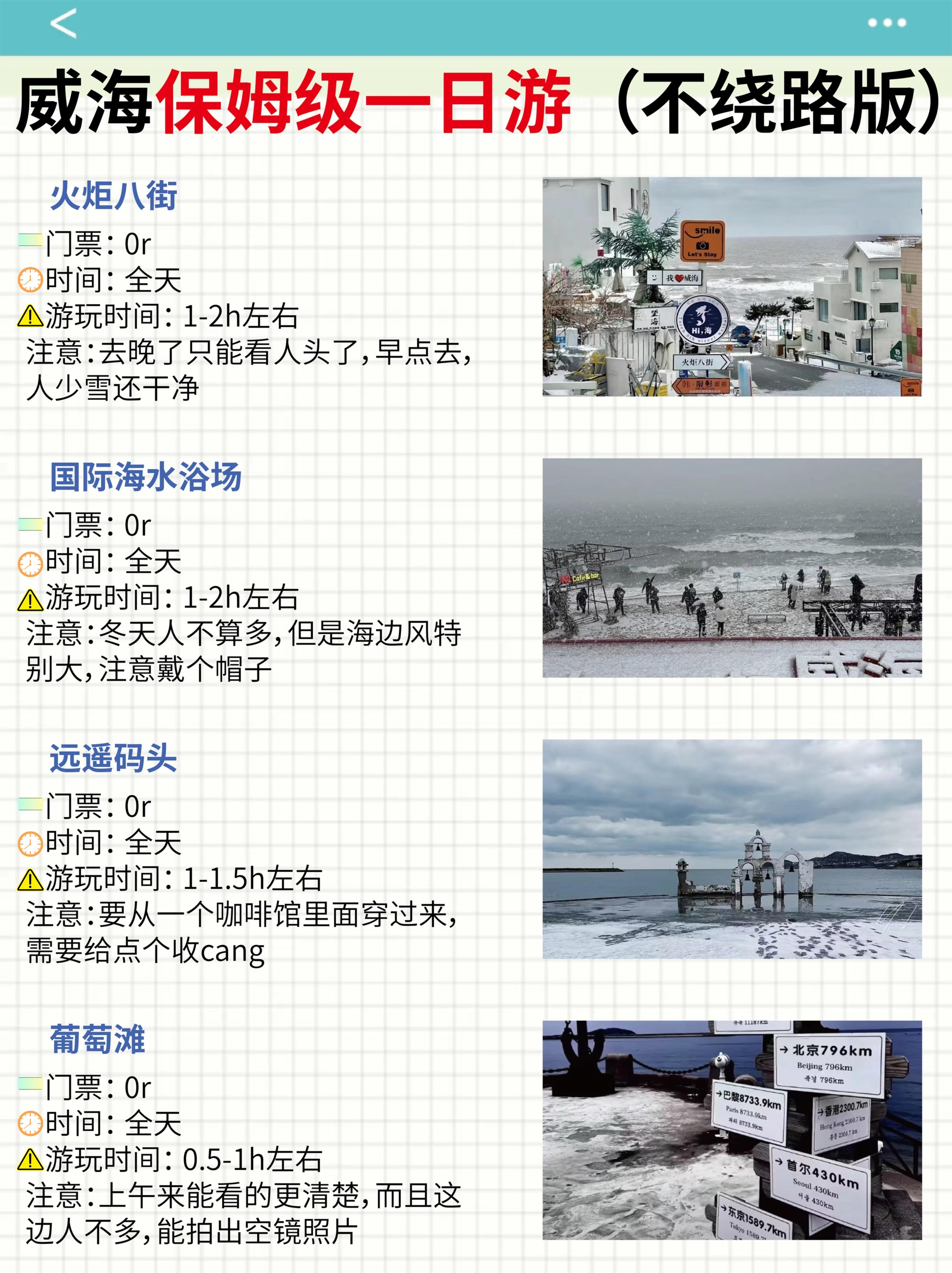 想要来看雪🧊提前多看看天气预报,看到有预报雪天就可以定酒店啦🏨,住在韩乐坊这边性价比很高,🍚吃饭特方便冬天来威海zui重要的就是要做好保暖措施,手套,围巾,🎩毛绒绒的帽子都要准备好,🌬️风大记得穿防风的羽绒服,路上的雪化了之后会有点滑,穿防水防滑的雪地靴来就好了,既保暖还不怕滑倒