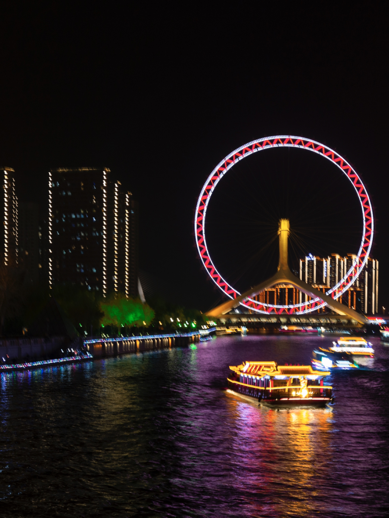 这里也是天津有名的标志之一,每到夜晚华灯🌃初上时,天津之眼的彩灯柔美,无数游客会来到这里。