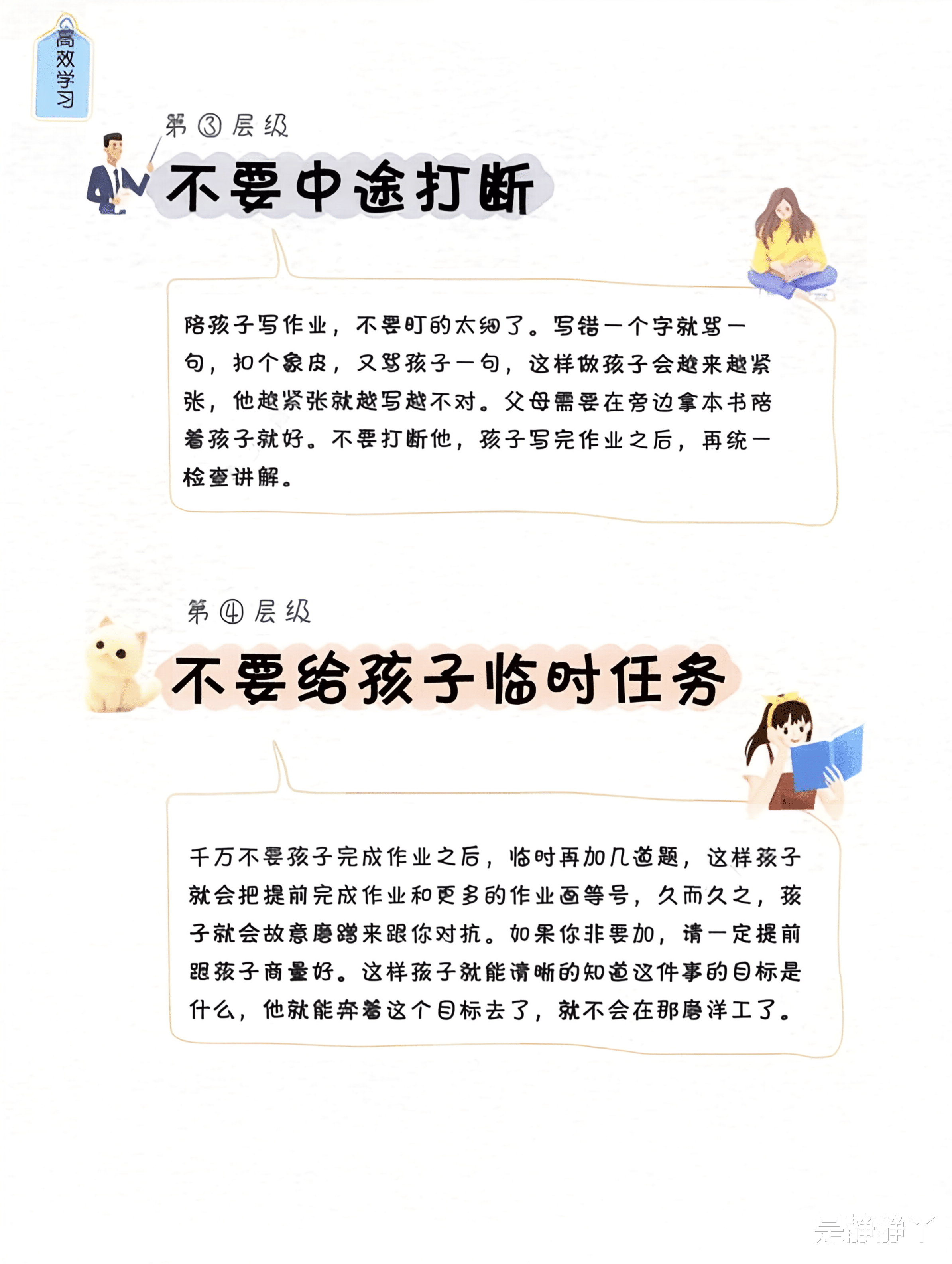 写作业时的“中途打断”也是大忌。孩子正写着作业,家长一会儿送水果,一会儿问“渴不渴”,看似关心,实则破坏了孩子的专注力。不如提前和孩子约定好,写作业时尽量不打扰,有事可以举手示意。这样孩子能保持连贯的思考,学习效率也会更高。