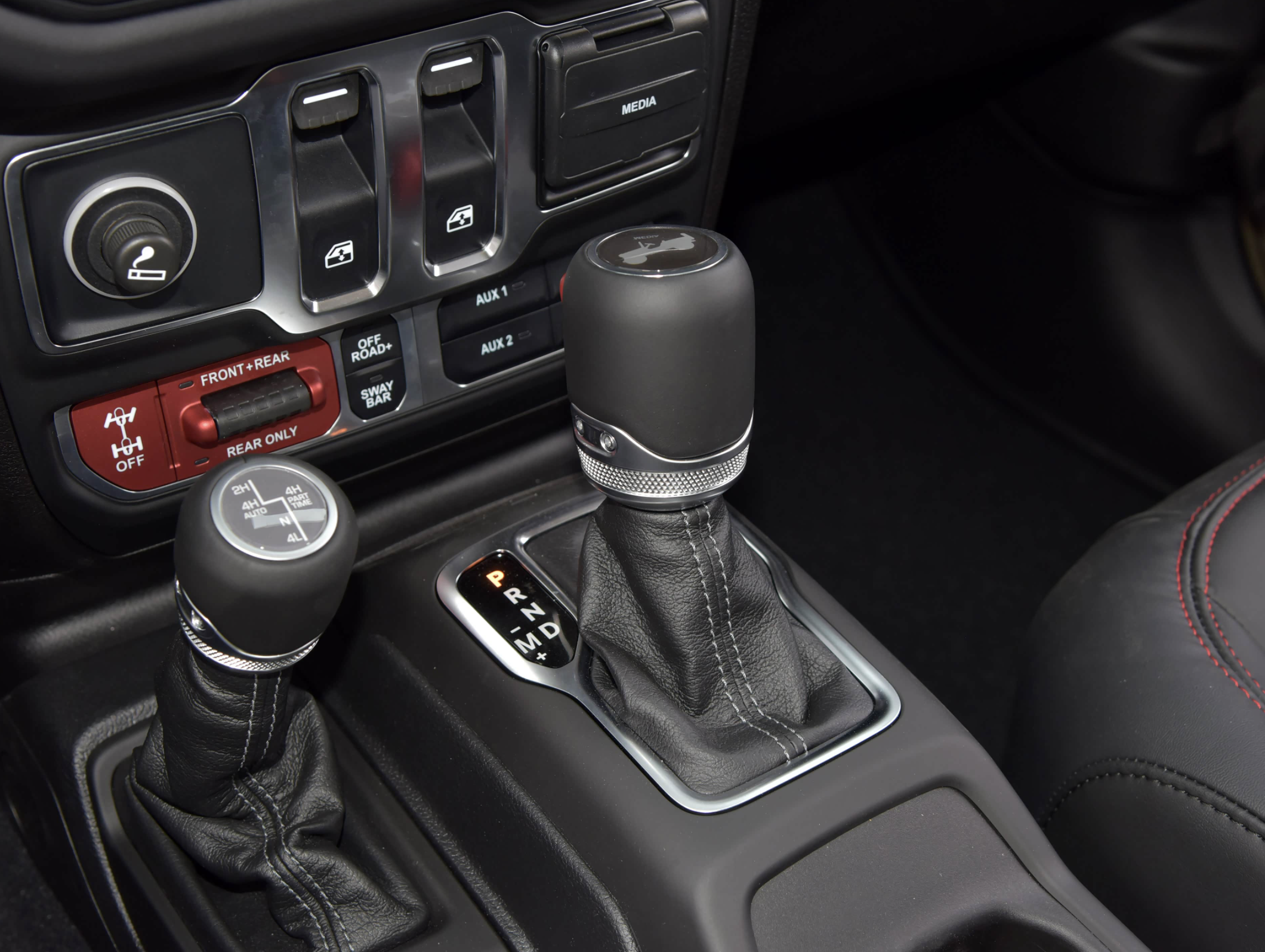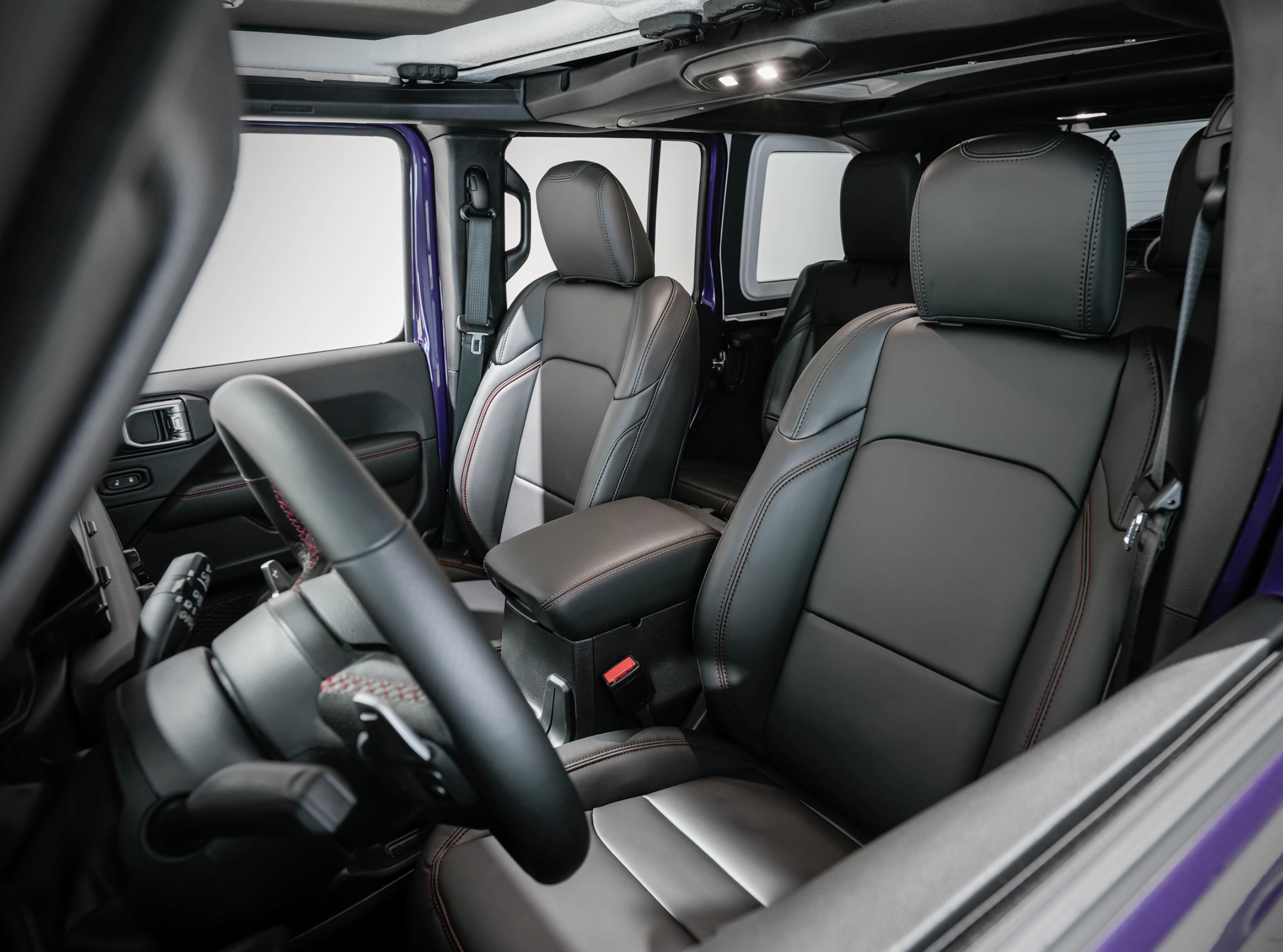 进入车内,Jeep牧马人Willys 392内饰的布局焕然一新,做工、用料和细节方面都进行了优化。红黑双色的搭配凸显出了年轻、运动的气息。大面积真皮面料的铺陈,再加上红色的双缝线,质感细腻,触感柔软。大量正圆形的设计,看起来更加舒服。T字形的中控台配备了8.4英寸全液晶仪表,12.3英寸的中控多媒体显示屏,带来了最直观的视觉冲击力。车内还配备了专属的Nappa真皮沙发座椅,支持加热、通风功能。同时车内还带有4个可自定义的辅助开关按钮以及配备了Alpine 9扬声器高级音箱系统。