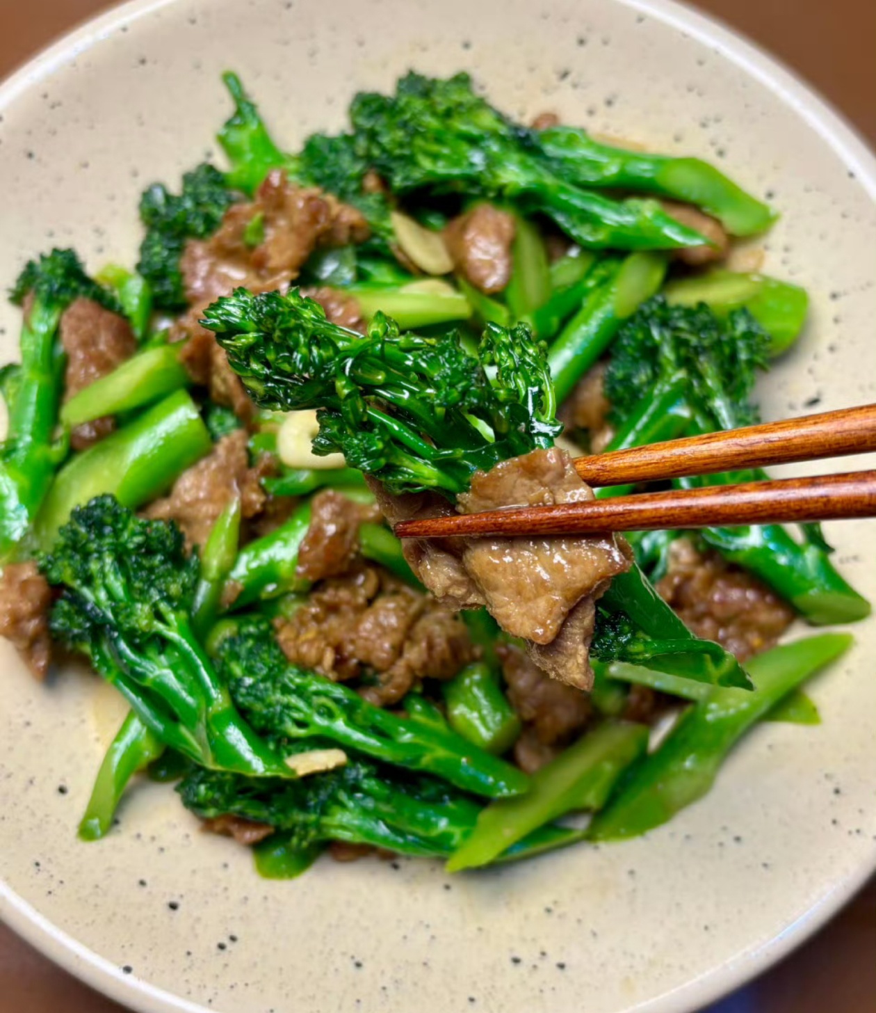 这道牛肉炒西兰苔,不仅美味,还藏着满满的营养。牛肉富含优质蛋白和血红素铁,饱腹感强还能高效补铁,特别适合忙碌的时候补充能量;西兰苔则是“营养小能手”,富含维生素C、膳食纤维和叶酸,热量低还能促消化,荤素搭配既解腻又健康,哪怕是减脂期的朋友,也能放心吃。每次做这道菜,家里的香味都能飘到楼道里,家人一闻到就知道是我在做饭,端上桌后,大家总是抢着夹,牛肉的鲜嫩、西兰苔的清甜,搭配着浓郁的蒜香,每一口都是满足。