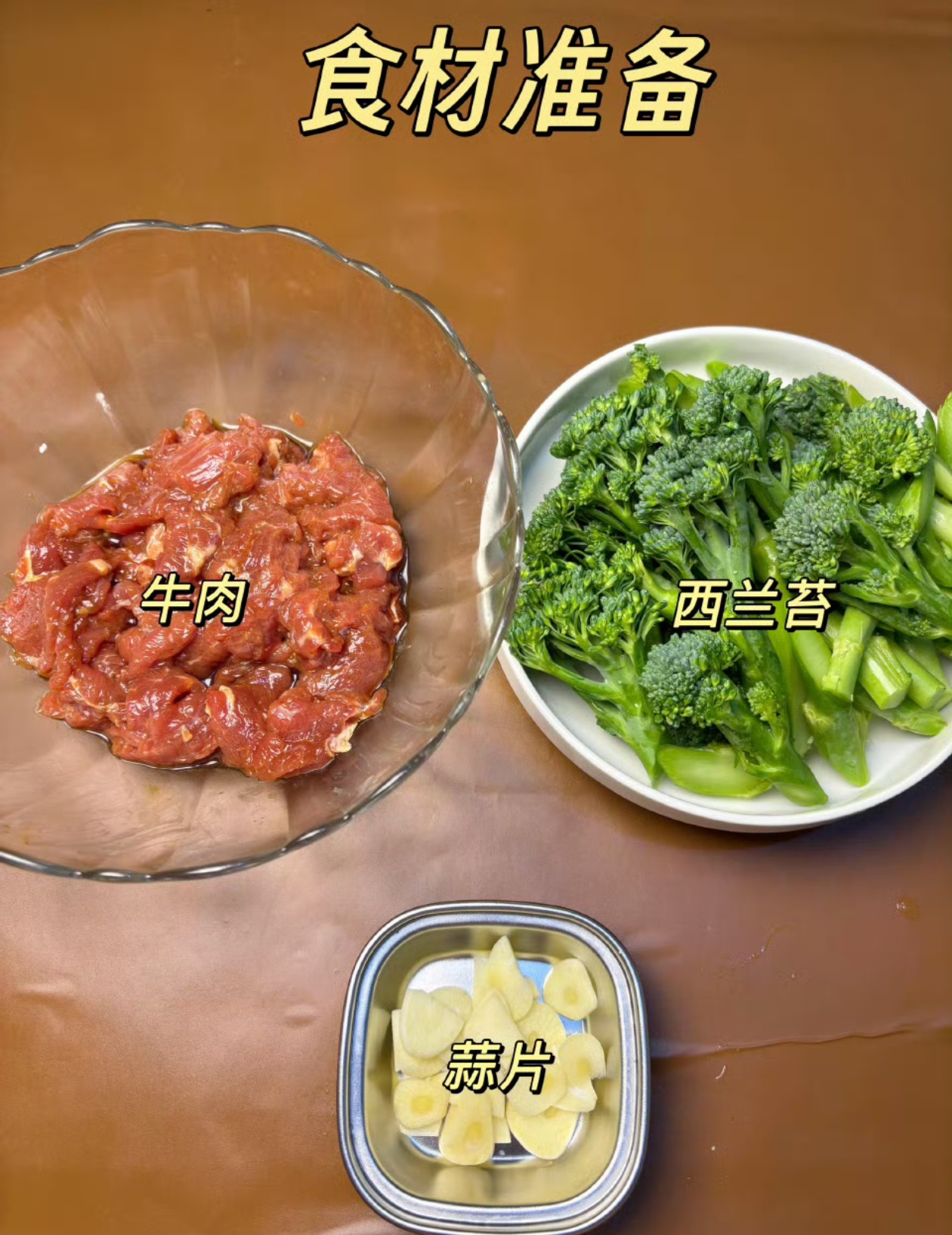 这道菜的灵魂在于食材的选择和处理,选对了食材,成功就已经过半。牛肉要选牛里脊或者牛后腿肉,这两个部位肉质细嫩,纤维短,炒出来不容易老,切成薄片后,加入1勺生抽、半勺老抽、适量淀粉和少许食用油,抓匀腌制10分钟,淀粉能锁住牛肉的水分,食用油则能防止肉片粘连,这样炒出来的牛肉才会滑嫩不柴。西兰苔要选新鲜翠绿、茎秆粗壮的,这种西兰苔水分足,口感脆嫩,清洗时要仔细,去掉老根和黄叶,切成段备用,再准备几瓣大蒜切成片,蒜香能很好地提鲜,让整道菜的风味更浓郁。