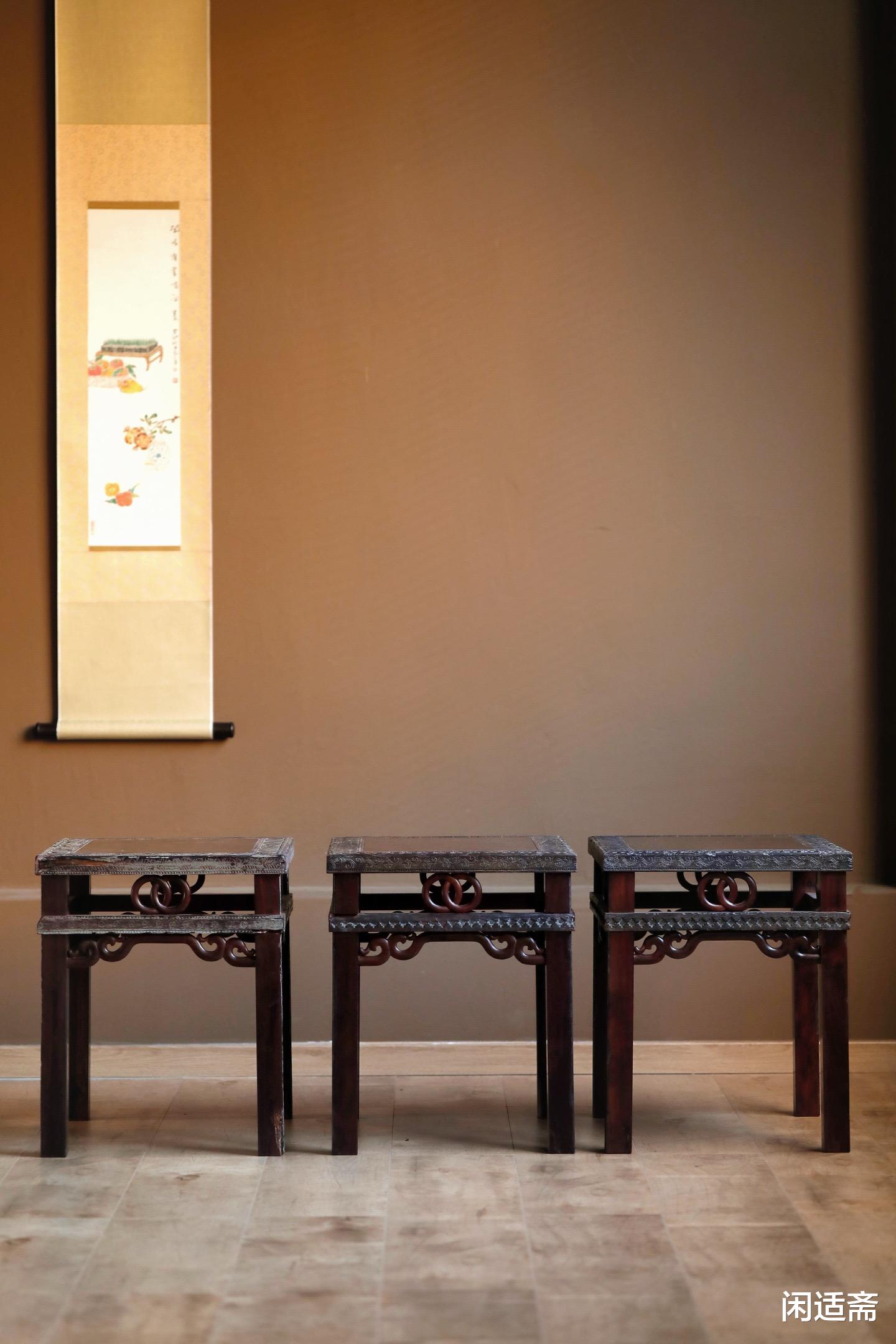 这套方凳,便以小叶紫檀拆房老料为核心用材,将老料的时光质感与传统工艺的巧思完美融合,在同类作品中堪称典范。