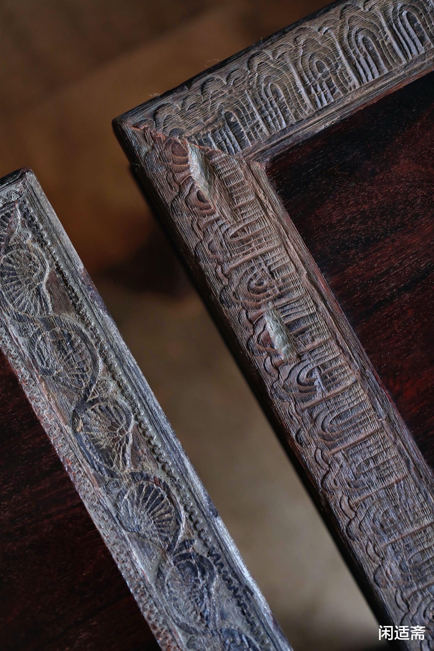 方凳的纹饰设计堪称“古韵与异域风情的巧妙共生”,既保留中式传统韵味,又融入独特的文化元素。凳面框与腿足之上,匠人精雕细琢着印度旧时代的银杏叶与莲花花纹——银杏叶纹路舒展流畅,边缘打磨得圆润细腻,似有叶片的轻薄质感;莲花花瓣层叠错落,线条柔美婉转,尽显“出淤泥而不染”的清雅寓意。这些异域纹样与中式经典纹样相得益彰:凳面转角处的如意纹线条优美,寓意“称心如意”;横枨间的卡子花以双环扣装饰,既起到装饰作用,又强化了结构稳定性,两种纹样一柔一刚,让纹饰层次更显丰富。