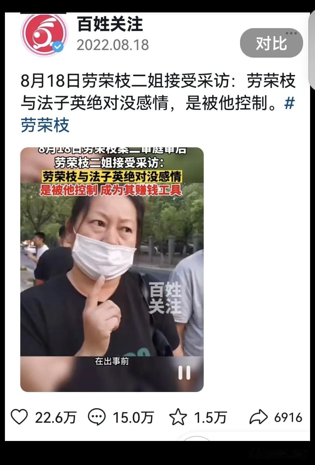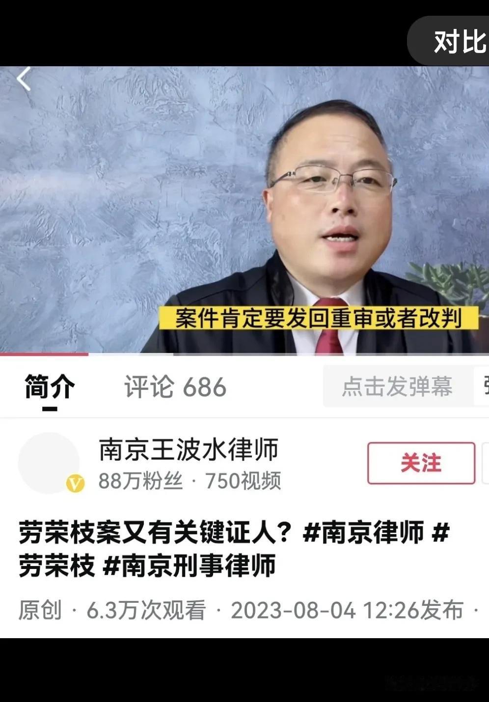 劳荣枝案纪念日,您知道是哪一天吗? 对于别人,我不好说,但对于劳荣枝来讲,8月8号堪称是她的纪念日。 因为2022年的这一天,是她走入二审法庭的日子。 环球网2022年8月18日8点58分,曾转发央视新闻客户端的一条消息—— 备受关注的劳荣枝案二审将于8月18日上午9点半在江西省高级人民法院开庭审理。 在这一天,在这个时间段,进入这家法庭的新安晚报记者朱庆玲,于转过天来的7点26分发布了如下报道—— 我没有色诱。 法子英是疯子。 我是傻白甜。逃离他,我的天空都是蓝的。 8月18日,劳荣枝上诉案的庭审现场,劳荣枝充分表达了自己的很多观点。 劳荣枝哭诉,被法子英强奸。 …… …… 上述这些话,便是被这篇报道的前缀原文。 在此,我没有添加任何语句。 而在那一天,最令人瞩目的是,全国知名的大律师吴丹红不顾舆论的压力,毅然决然地走上了法庭庭审的辩护席,开始为这位已被一审法院判了死刑的劳荣枝进行辩护。 在法庭上,他直言不讳地指出——劳荣枝有罪,但罪不至死。 而当二审法院驳回他的辩护,宣布维持一审法院的判决之后,他仍不肯放弃他的信念,向最高法递交了长达20万字的再辩护。 由此,他自己把自己推上了风口浪尖,一下子成了网上的众矢之的。 不少网民都认为他是在助纣为虐。 此后不久,他还受到了某单位的投诉和某部门的调查。 甚至有人在网上疾呼:劳荣枝一旦被执行死刑,也要把他吴丹红送进大牢,让他在大牢里蹬一辈子缝纫机,甭想再出来。 会不会走到那一步? 时下,我不敢去做出定论。 我能够做出定论的是,这股舆潮依然汹涌澎湃。 数不清的网民都在网上跟风高呼着劳荣枝不死难平民愤的口号,而慷慨激昂。 在此情形下,曾一度称劳荣枝案的二审裁定,是自秦始皇以来都从未有过的四川律师徐华,也悄悄地变得默然缄口。 据网上传言,她说劳荣枝案由最高法发回重审的可能性微乎其微。 只有北京的律师熊达,至今仍坚定地站在吴丹红的一边,仍在为劳荣枝罪不至死而继续努力。 只有南京王波水律师坚称,如果新的证人证言得到证实,劳荣枝案肯定会发回重审,或者改判。 而新的证人证言,据熊达律师称:那具有颠覆性,将颠覆人们对劳荣枝以往的认知。 是不是这样? 我们还需静静地等待最高法的最后裁决。 好了,今天的话题,就说到这里。 感谢您的收看。梦野艳齐。