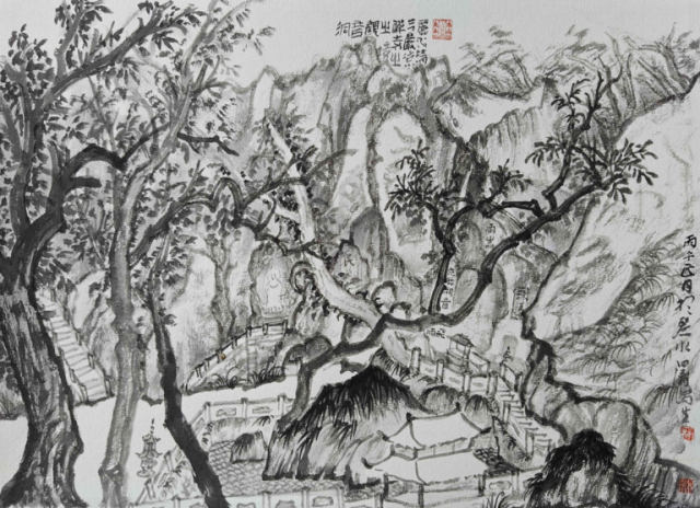 2024年山水画《深山藏古寺》入选山西省庆祝中华人民共和国成立75周年优秀美术作品展。