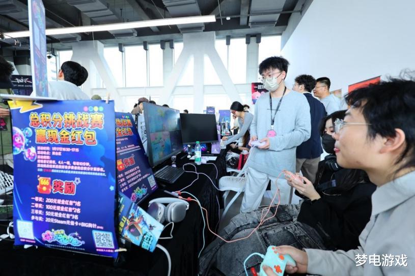 除了展方统一组织的官方活动外,在不少展位的游戏开发者也为自己的作品精心设计了小活动,有的只需玩家完成游戏试玩后,便可直接获得开发者精心准备的游戏周边,有的则设置了更具挑战性的活动,虽然挑战的难度不低,但这却丝毫没有削减玩家的热情,反而吸引了大量玩家积极参与。