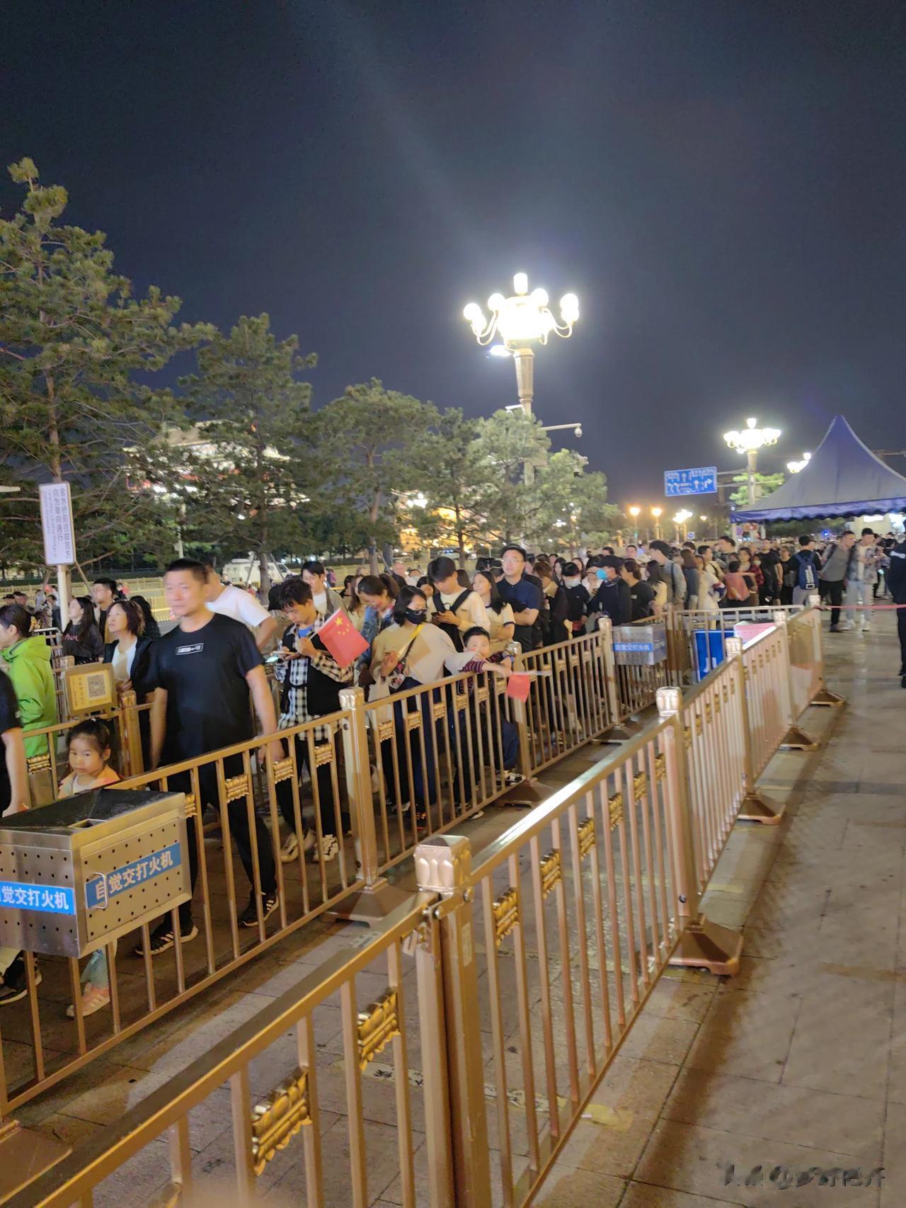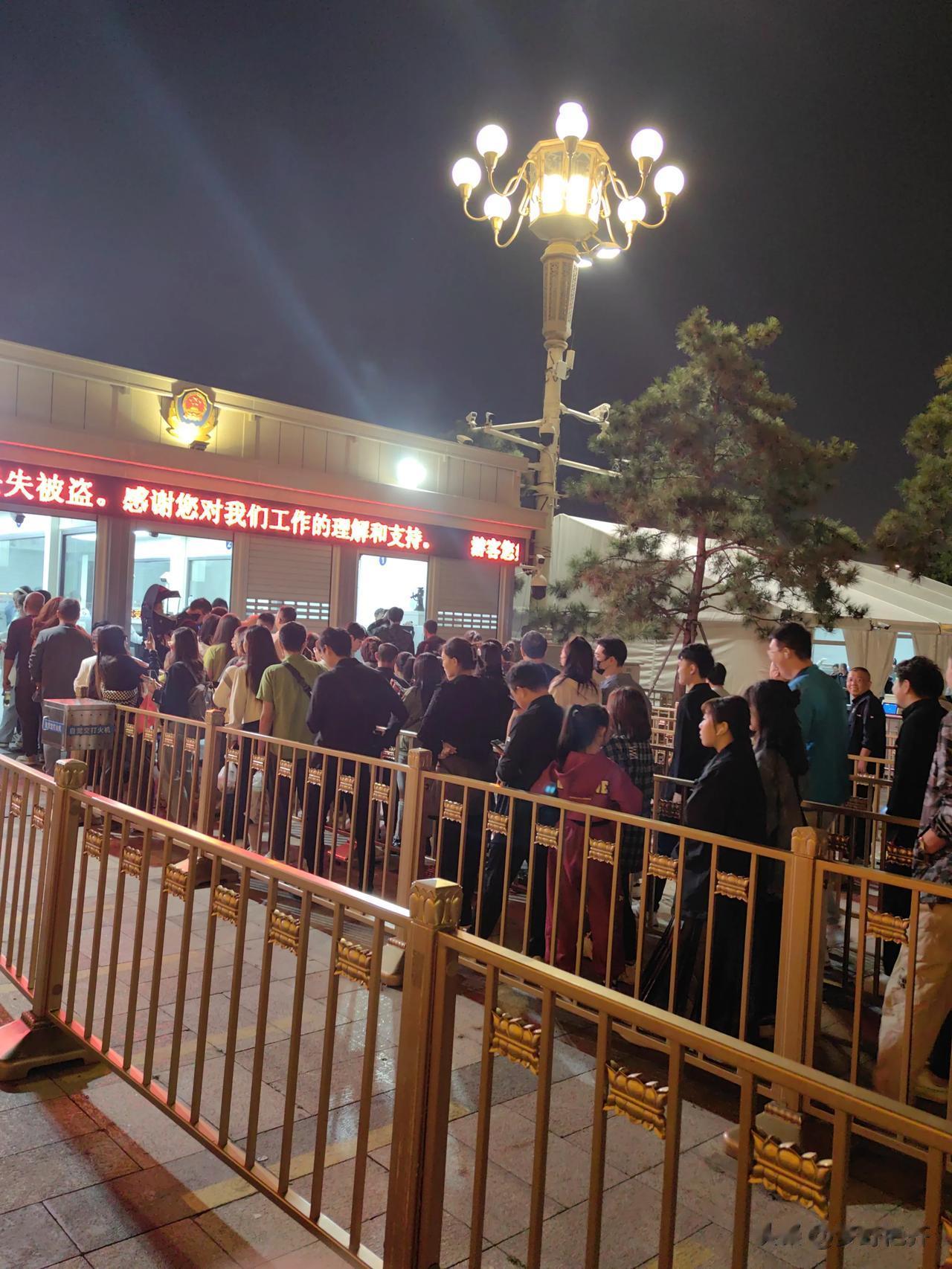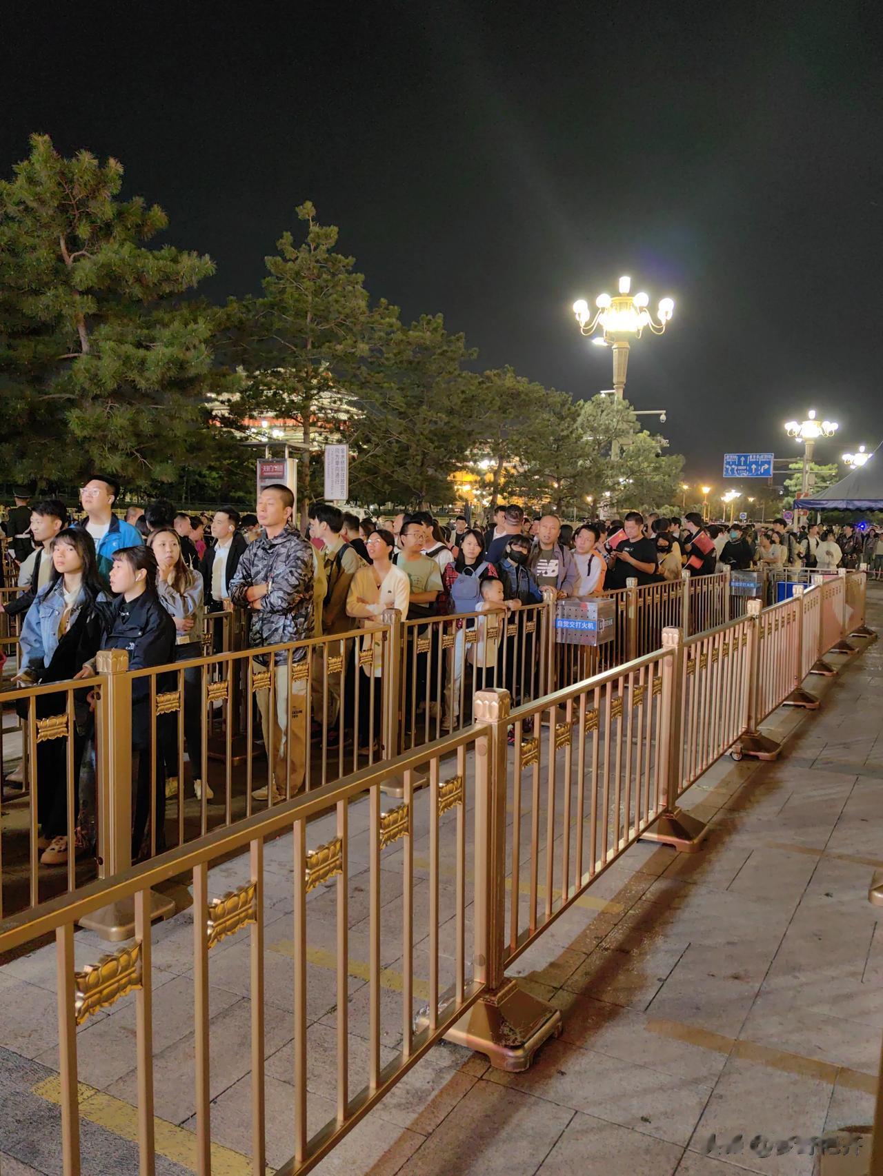 #小长假就要这样玩# 等待进天安门广场排队进入入口的人群。 今夜进天安门广场,需
