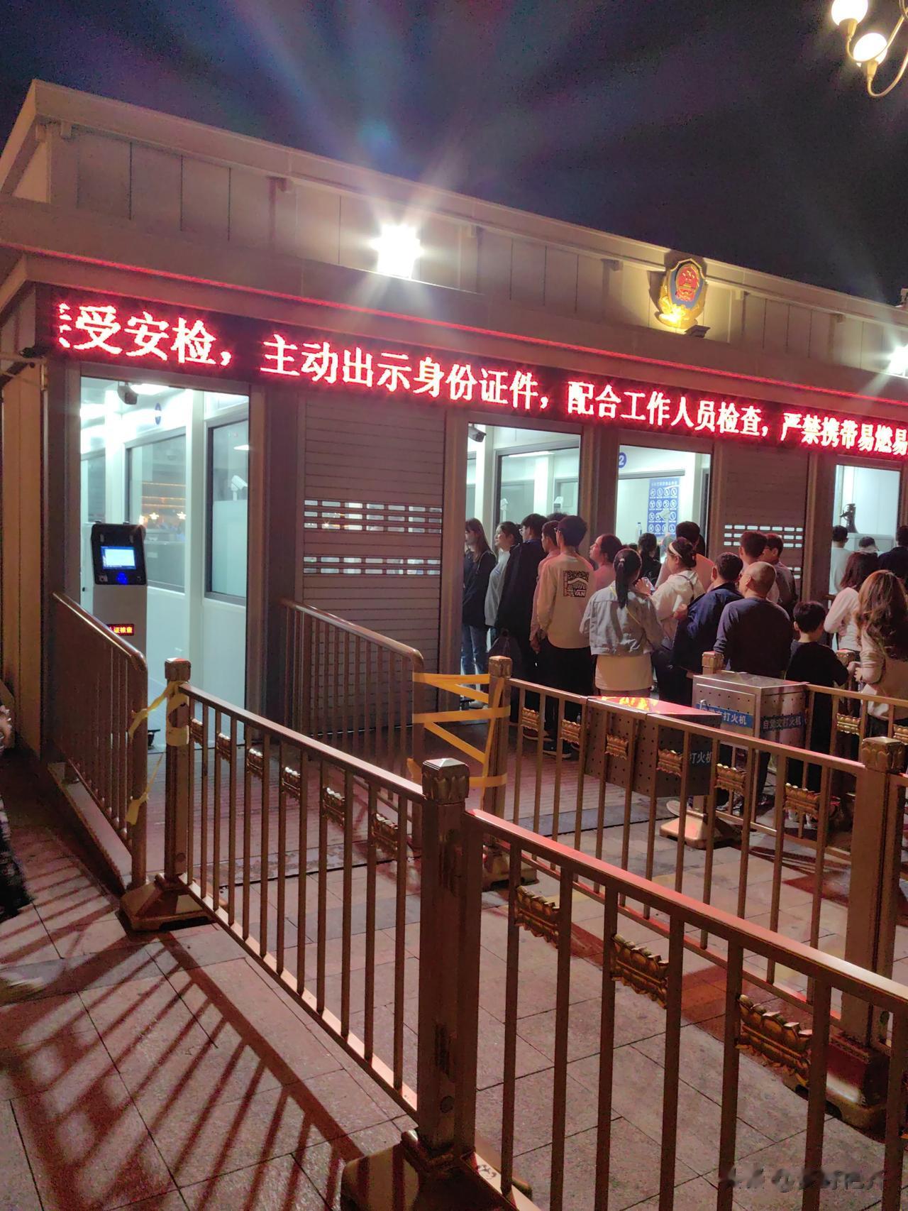 #小长假就要这样玩# 等待进天安门广场排队进入入口的人群。 今夜进天安门广场,需验身份证,必须经过安检才可入场。