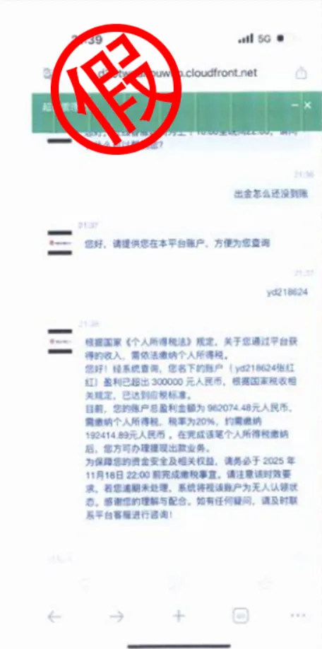 10月7日起至11月22日,张女士在对方的诱导下,通过“线上虚假充值,线下银行取现转账”的方式,陆续向该平台投入资金,高达24万元人民币。