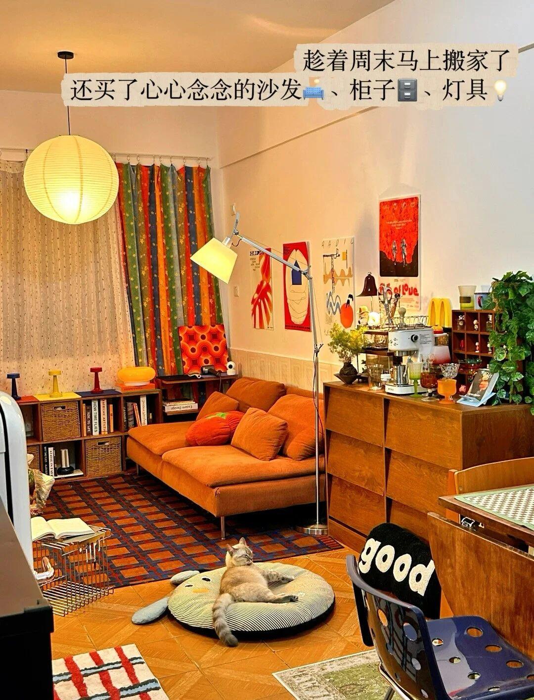 这个出租房,第一个"堆满热爱"的空间,就是客厅了,装满复古多彩元素,每个角落都有故事感;