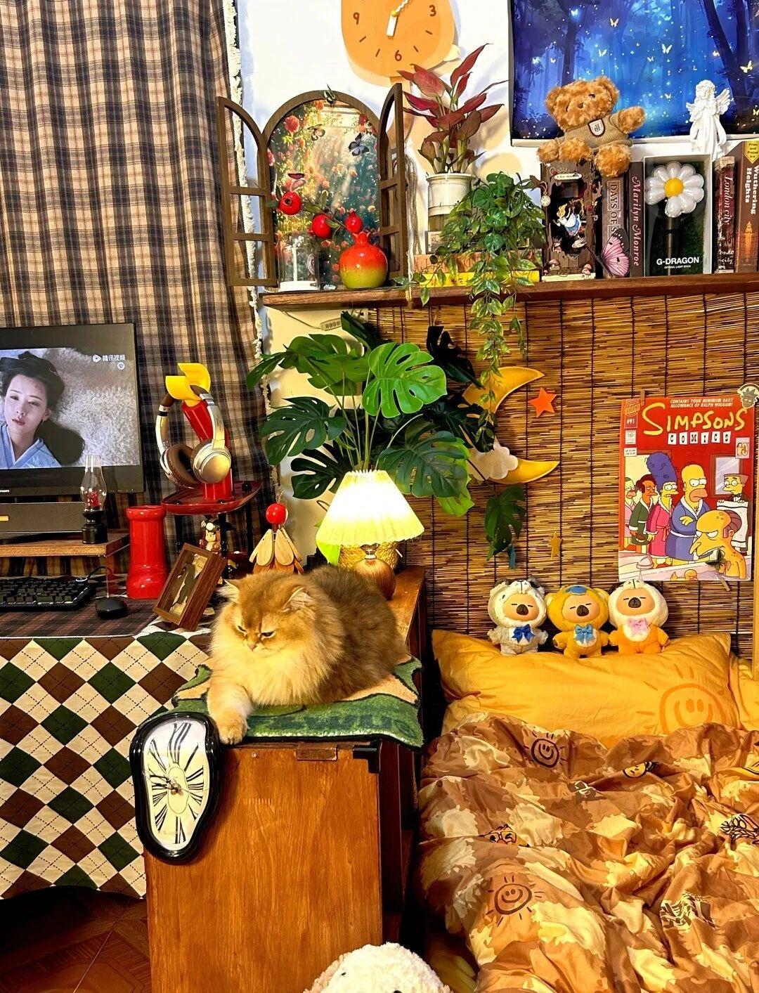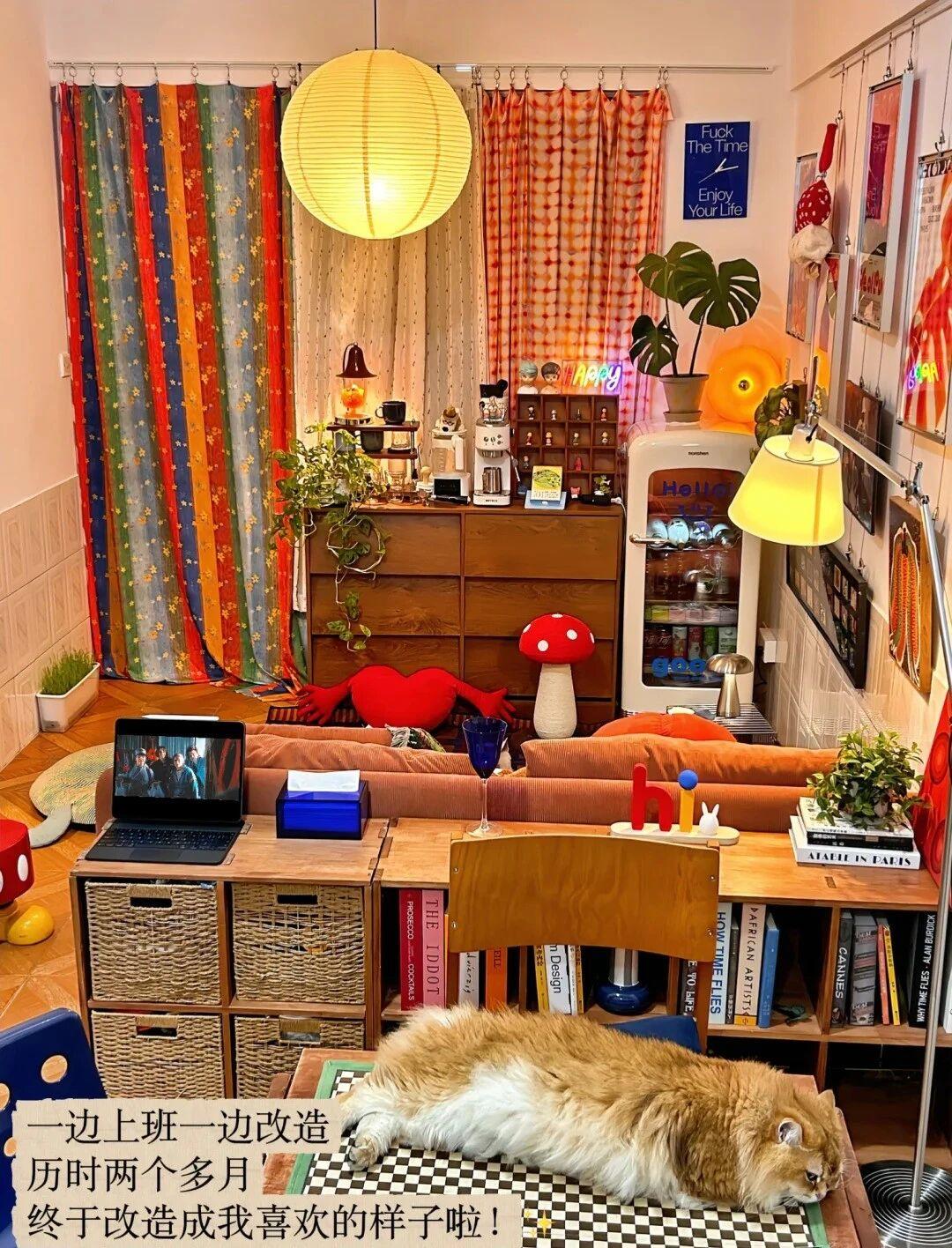 现在的房子,目之所及,都是五彩斑斓,而且满满当当,如果是重度极繁彩色复古爱好者,一定会喜欢这个布置,甚至觉得安全感满满。