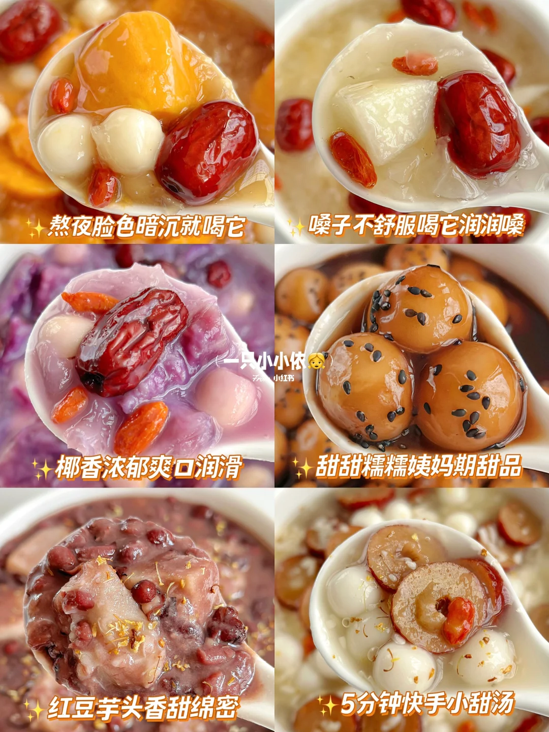 🍂一到秋冬就干巴巴、手脚冰凉的仙女们,答应我一定要试试这6种养生小甜汤好吗!!用的都是银耳、红枣、枸杞等对女生很友好的滋补食材,香甜软糯,比奶茶还好喝👏🏻坚持一周,小脸自带腮红🧏🏻♀️想吃谁做的请直接艾特他!