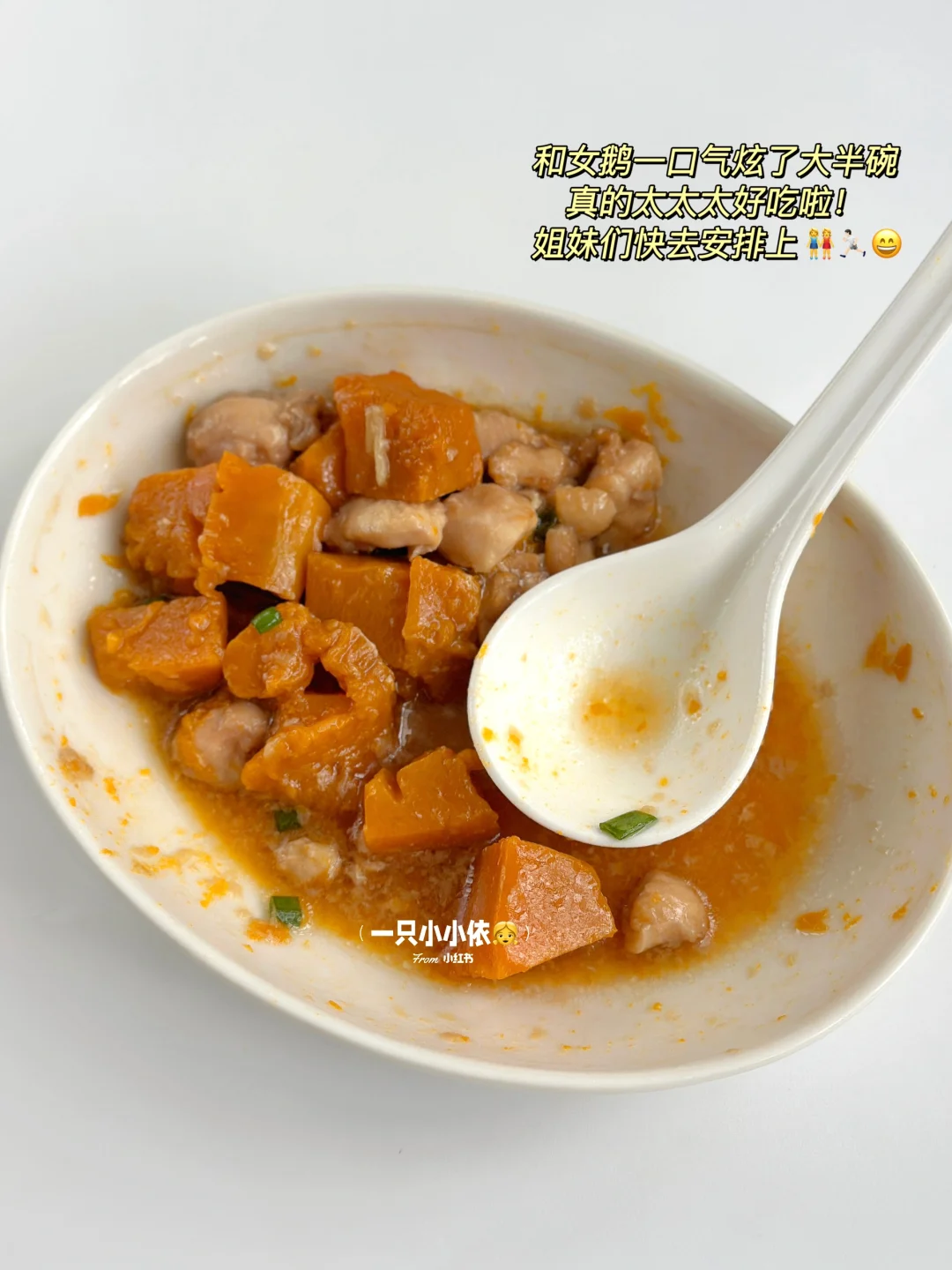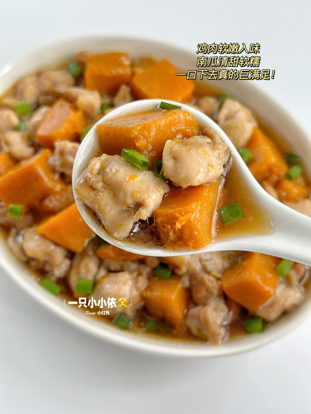 ✨今天给女儿安排了馋了很久的南瓜蒸鸡腿!鸡肉软嫩入味🍗南瓜清甜软糯🎃再来几勺蒸出来的汤汁拌饭,真的太过瘾了!!👏🏻👏🏻我俩一口气炫了大半盘~[偷笑R]
