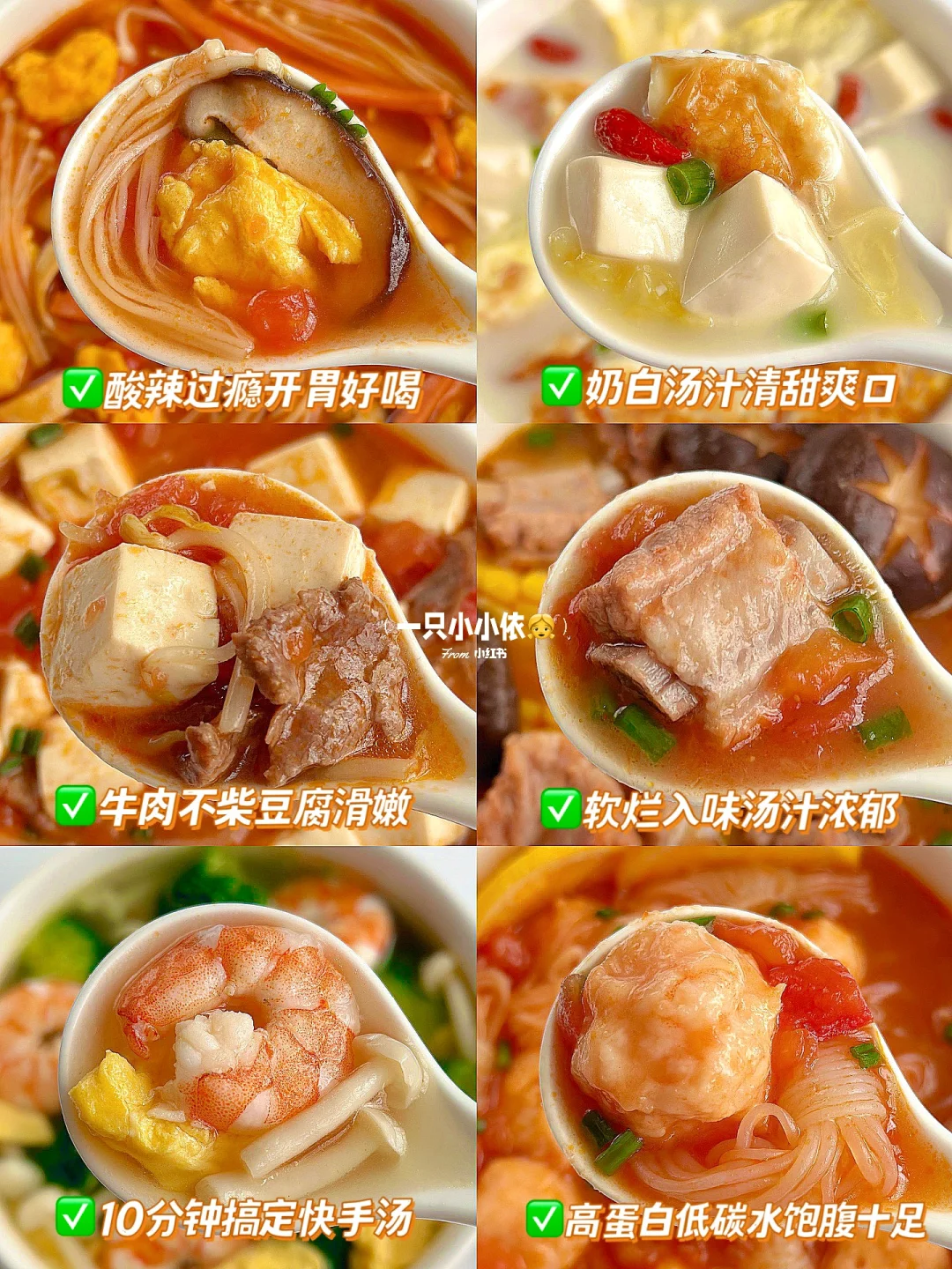 🍂天气冷了总想来一碗热呼呼的汤,从头暖到脚🫕本期分享6种营养开胃的刷脂汤,低卡美味、营养健康、暖胃饱腹,喝起来敲过瘾😄一大碗才300卡左右,低卡减脂餐代替晚餐,可以放心炫!多做点全家都能喝哦👨👩👦