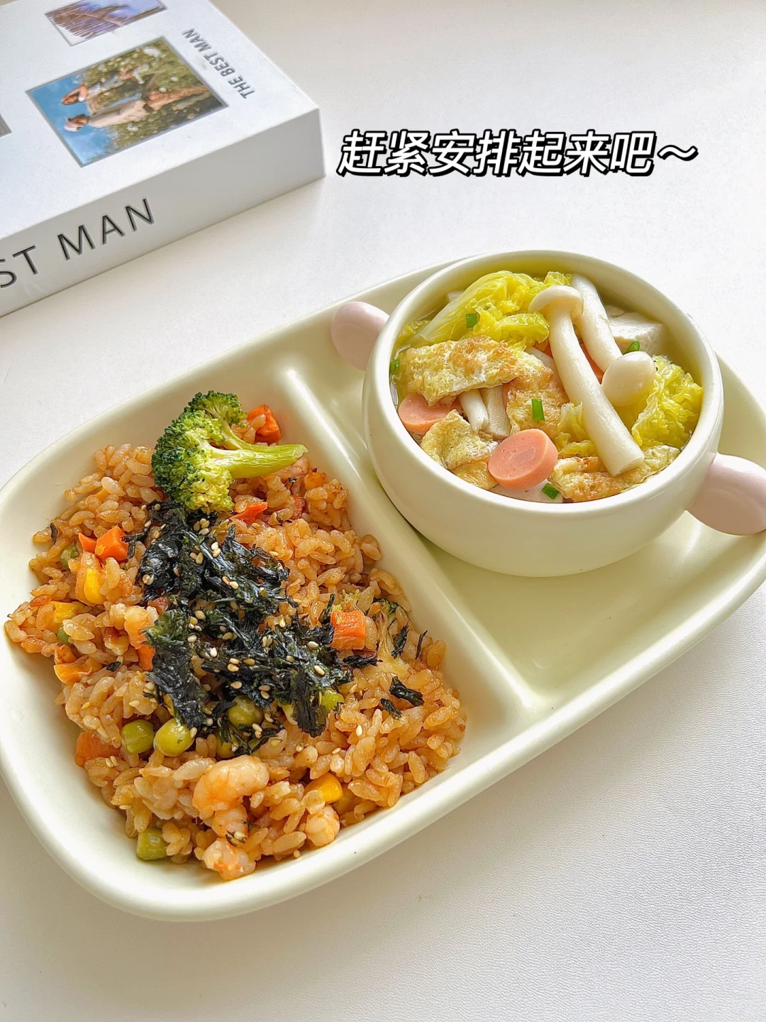 姐妹们,赶紧安排这个汤➕米饭‼️巨鲜美好吃 🧚🏻♀️这个菌菇豆腐汤搭配这个虾仁时蔬饭,真真是太美味了吧‼️汤鲜味美,好喝不油腻,我家宝宝喝的汤都不剩😊,米饭里有虾有菜有,营养也是满满,再配上孩子们都爱的海苔碎,真的是馋哭隔壁小朋友👬,太好吃了😋,赶紧安排起来吧~ ✅具体做法参考图文教程哦~