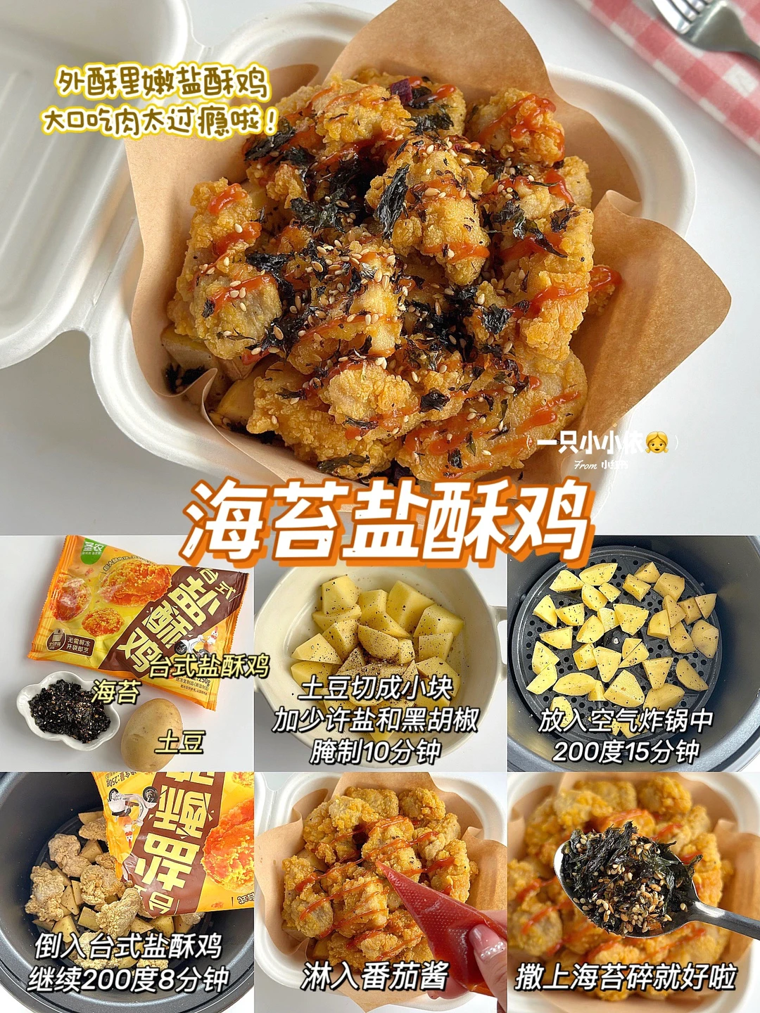 盐酥鸡是正宗的台式风味,用的是去皮鸡腿肉🍗超大块、肉香满满,8⃣️分钟就能烤得金黄酥脆,撒上一点海苔,吃起来很过瘾!👏🏻厨房小白也能轻松搞定!喜欢在家鼓捣美食的姐妹们真的可以冲一波啦!🏃🏻