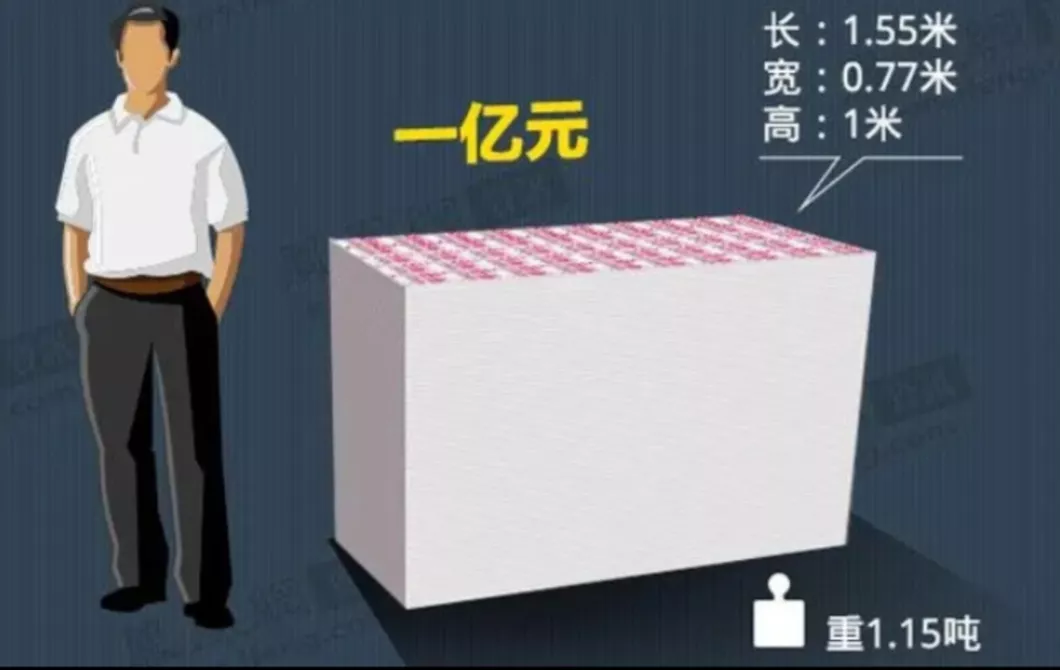 有人别墅里藏了两吨黄金,数学学的不好,大致算了一下。一吨黄金大概价值6个亿,两吨12个亿元。到底藏现金和钞票哪个方便? 一亿现金,按照100元面值,体积大约1.2立方米。12亿现金要24立方米。大概相当于一间小卧室塞满100元人民币。 一吨黄金体积只有0.05立方米,12个亿黄金也只有0.1立方米,相当于大约40厘米的一个立方体,也就是大约平时一箱酒的大小。价值12个亿的黄金,也就两箱酒的体积大小。 现在知道哪个方便了吧,关键是黄金不会燃烧、泡水、发霉……就是别看体积不大,两个酒箱子的黄金,想挪个地,一个人累一身汗都搬不完。 祝各位都有累一身汗都搬不完的钱