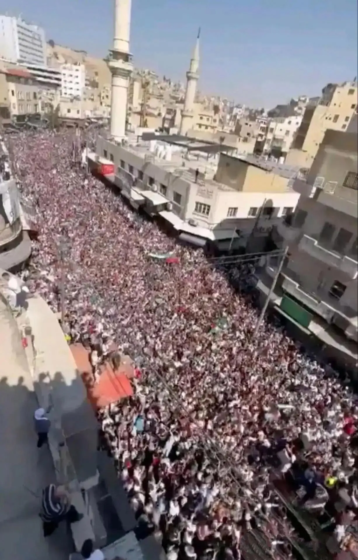 支持美国的约旦,首都安曼已经完全失控了,哈马斯发起的反击,作为阿拉伯国家的约旦,倒向了美国开放领空,允许美国战机降落约旦的军事基地,在阿拉伯民族存亡之际,约旦民众彻底觉醒,纷纷上街游行示威,声讨本国政府的倒行逆施,约旦领导人缺乏战略眼光,目前时局约旦无需出头,有伊朗、沙特阿拉伯和埃及呢,随大溜对自己最为有利