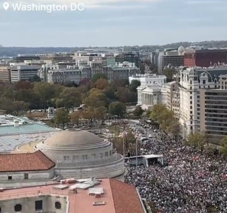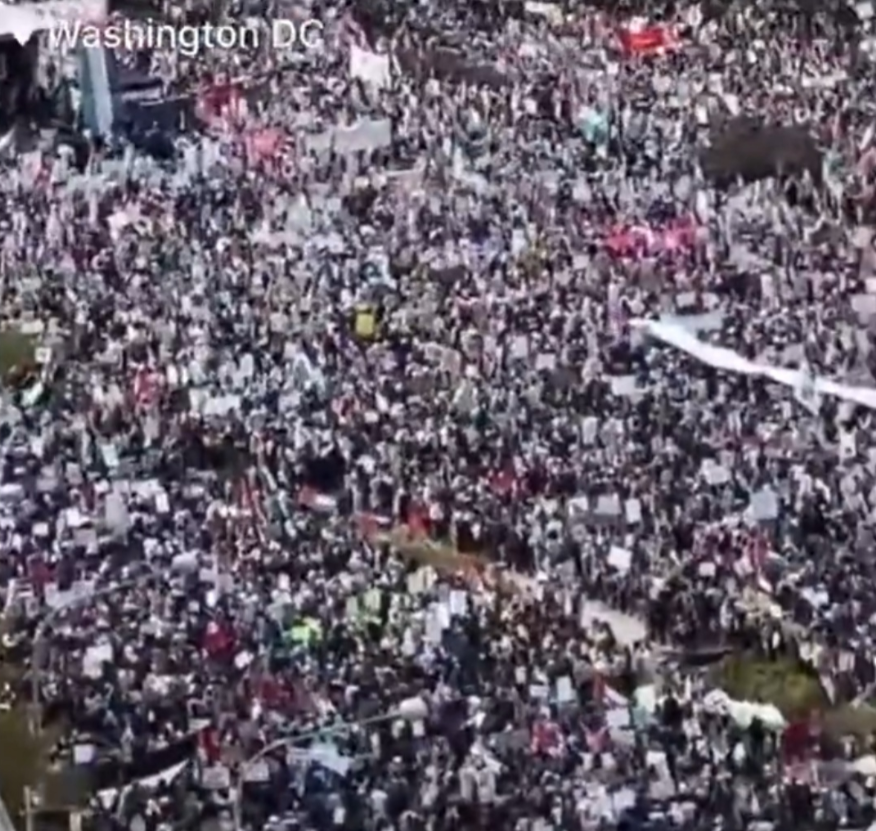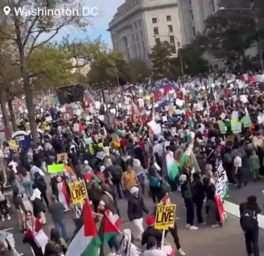 周六,大约5-10万巴勒斯坦支持者占领了美国首都华盛顿特区的主干道,这些人不认可哈马斯是恐怖分子。