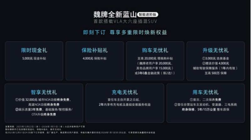 为让更多用户轻松拥有“为爱进阶”的出行体验,魏牌全新蓝山智能进阶版同步推出诚意十足的购车权益: