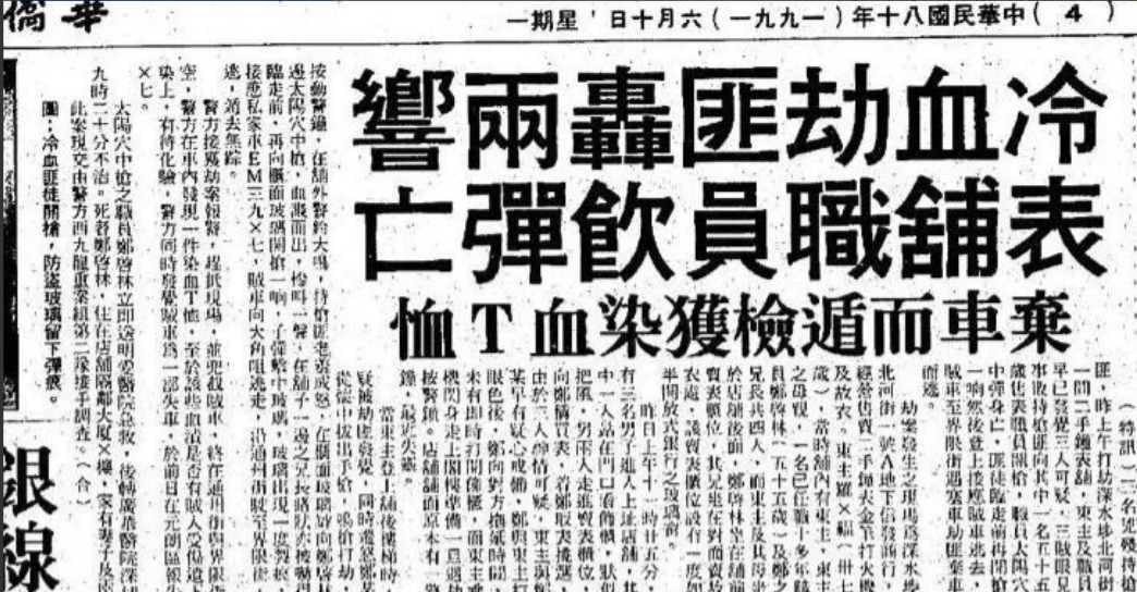 他犯案的年份是1991年,当年三名”省港骑兵“闯入深水埗北河街一间钟表行抢劫,虽然空手而回,但却开枪打死一名职员。