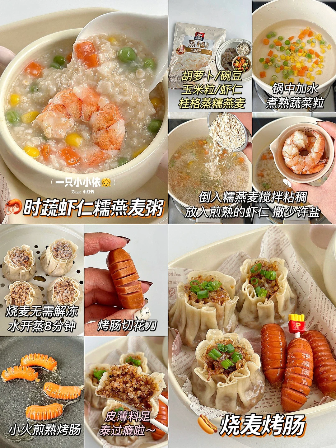 DAY 6:时蔬虾仁糯燕麦粥&烧卖烤肠