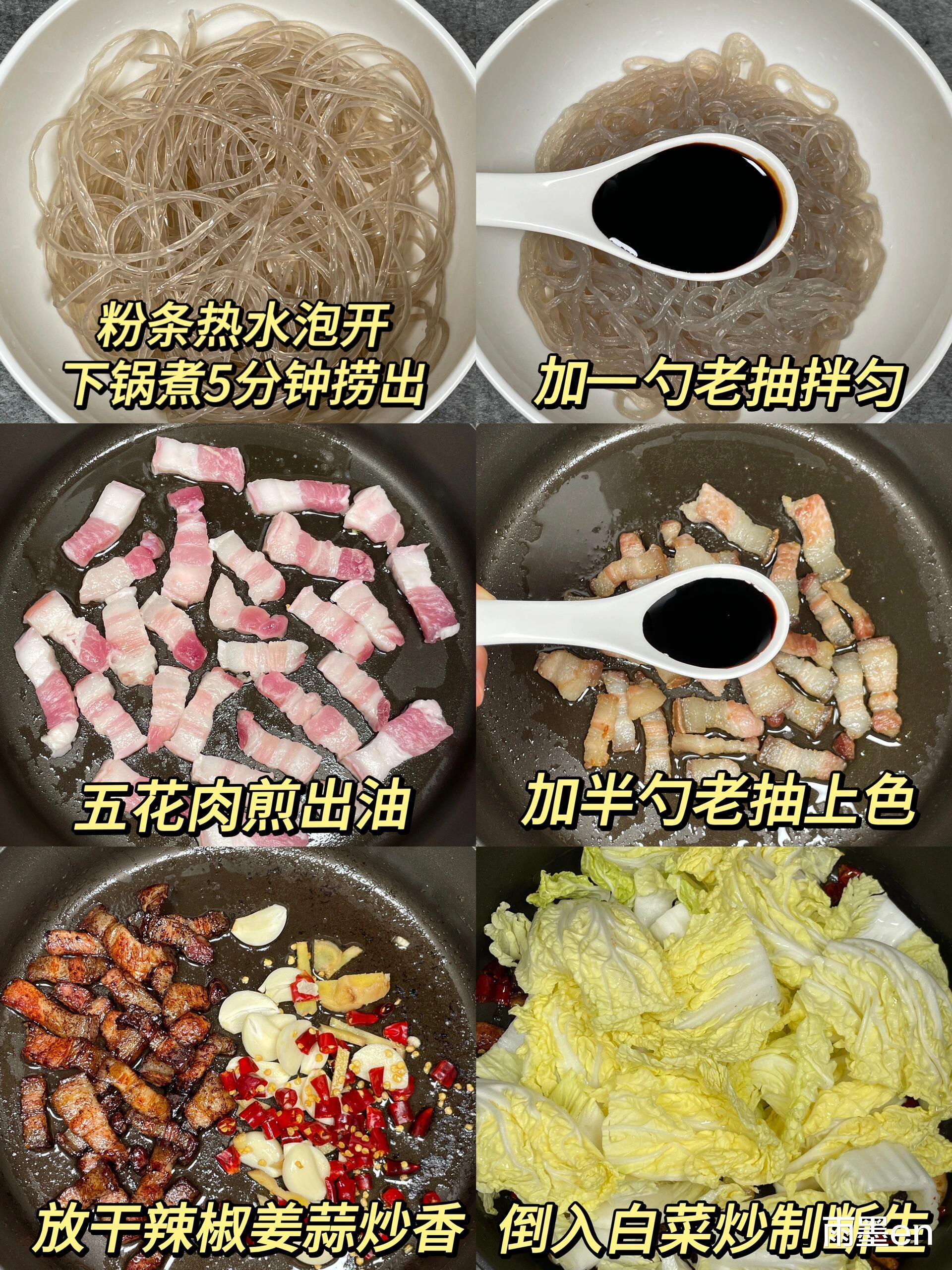 分享几个让这道菜好吃到跺脚的小技巧:一是五花肉一定要煸出油脂,不仅不腻,还能给菜增香;二是白菜帮和菜叶分开炒,菜帮耐炖先下锅,菜叶易熟后下锅,保证两者口感都刚好;三是粉条别用开水泡,温水泡出来更筋道,炖的时候最后15分钟放,避免煮烂成坨;四是盐要最后放,既能保持白菜的脆嫩,又能让味道更鲜美。