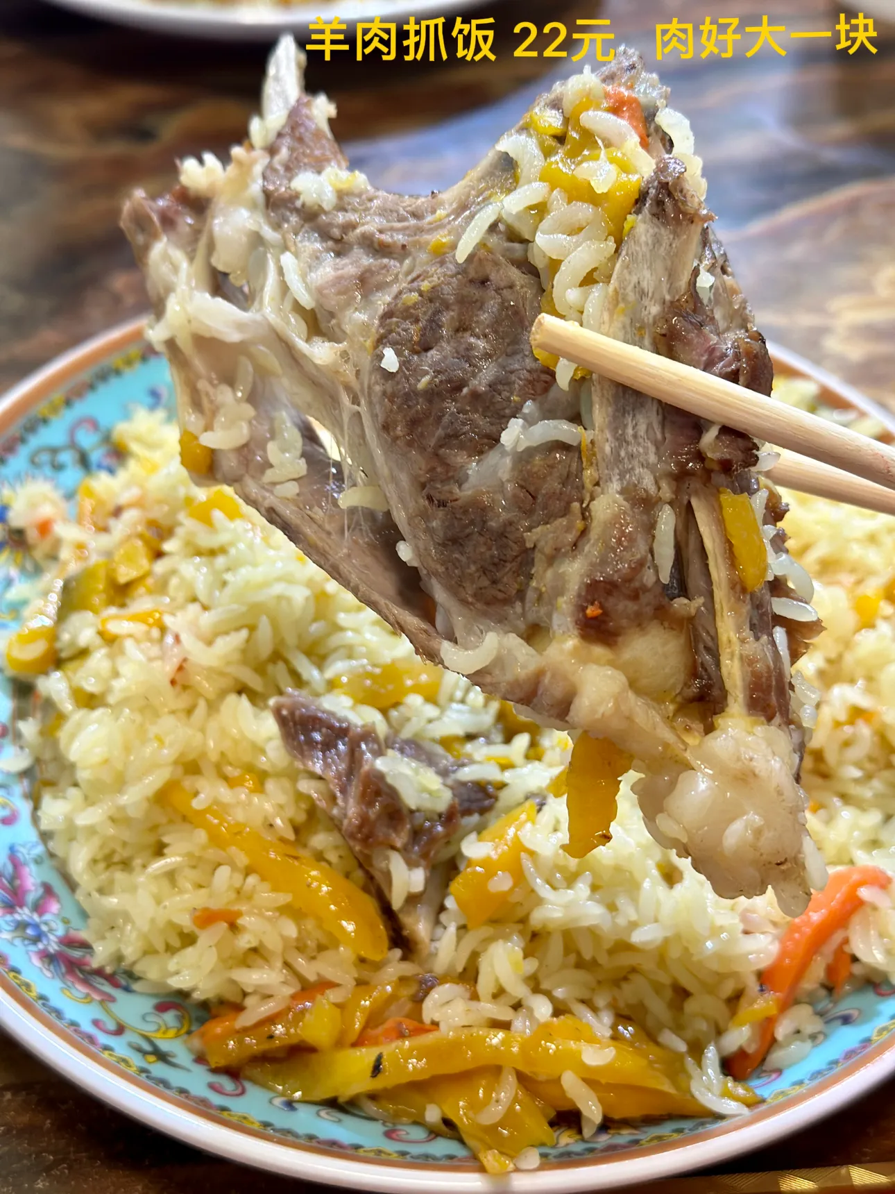 到奥依塔克镇吃了个早饭,羊肉抓饭22一份,好大一块羊肉,分量很足,味道不错,饭不够可以再加,不过分量太多,我根本吃不完。