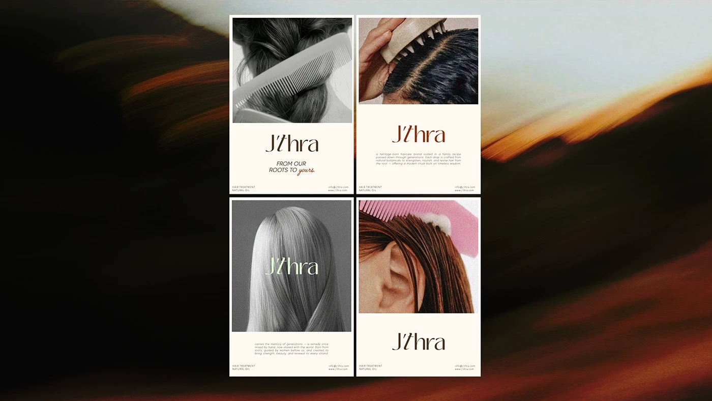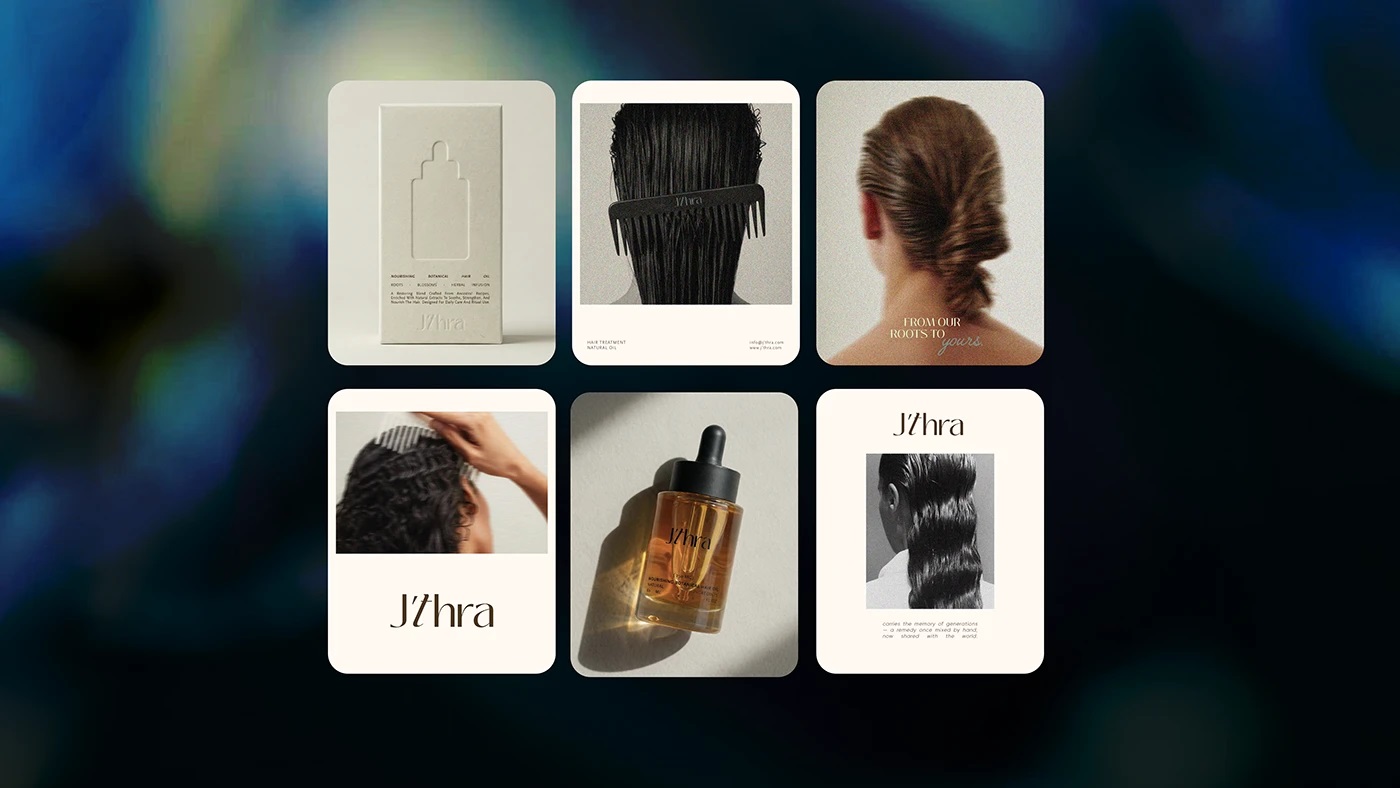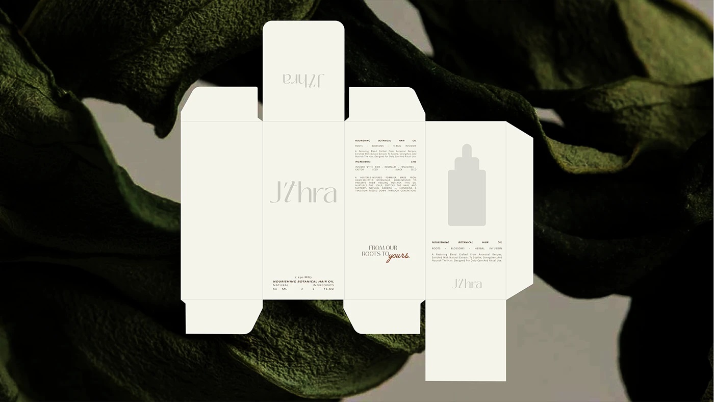 J’thra品牌包装设计匠心融合阿拉伯文与拉丁字母的视觉韵律,双语标识在比例、节奏与优雅斜势上巧妙呼应——如“J”与“t”的倾斜笔触共舞,传递灵动前行的品牌姿态。整体汲取自然肌理与温暖大地色调,定格真实生活瞬间:不刻意雕琢,而重温度与共鸣。每一处细节皆诉说质朴人文故事,让包装成为可感知的情感载体,温柔连接不同文化与心灵。