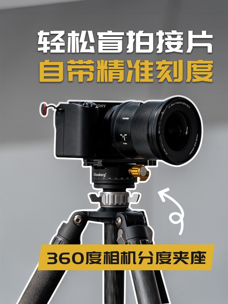 有了这款配件,全景接片都不用愁啦!这款360度的相机分度夹座可以精准刻度安装在三脚架上保持水平状态下,可以帮你360度无
