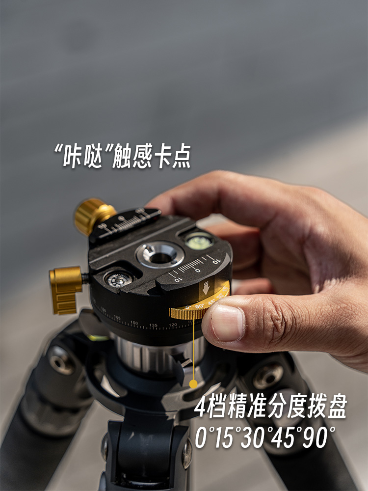 安装在三脚架上保持水平状态下,可以帮你360度无死角拍摄全景接片,让你接天接地接世界!