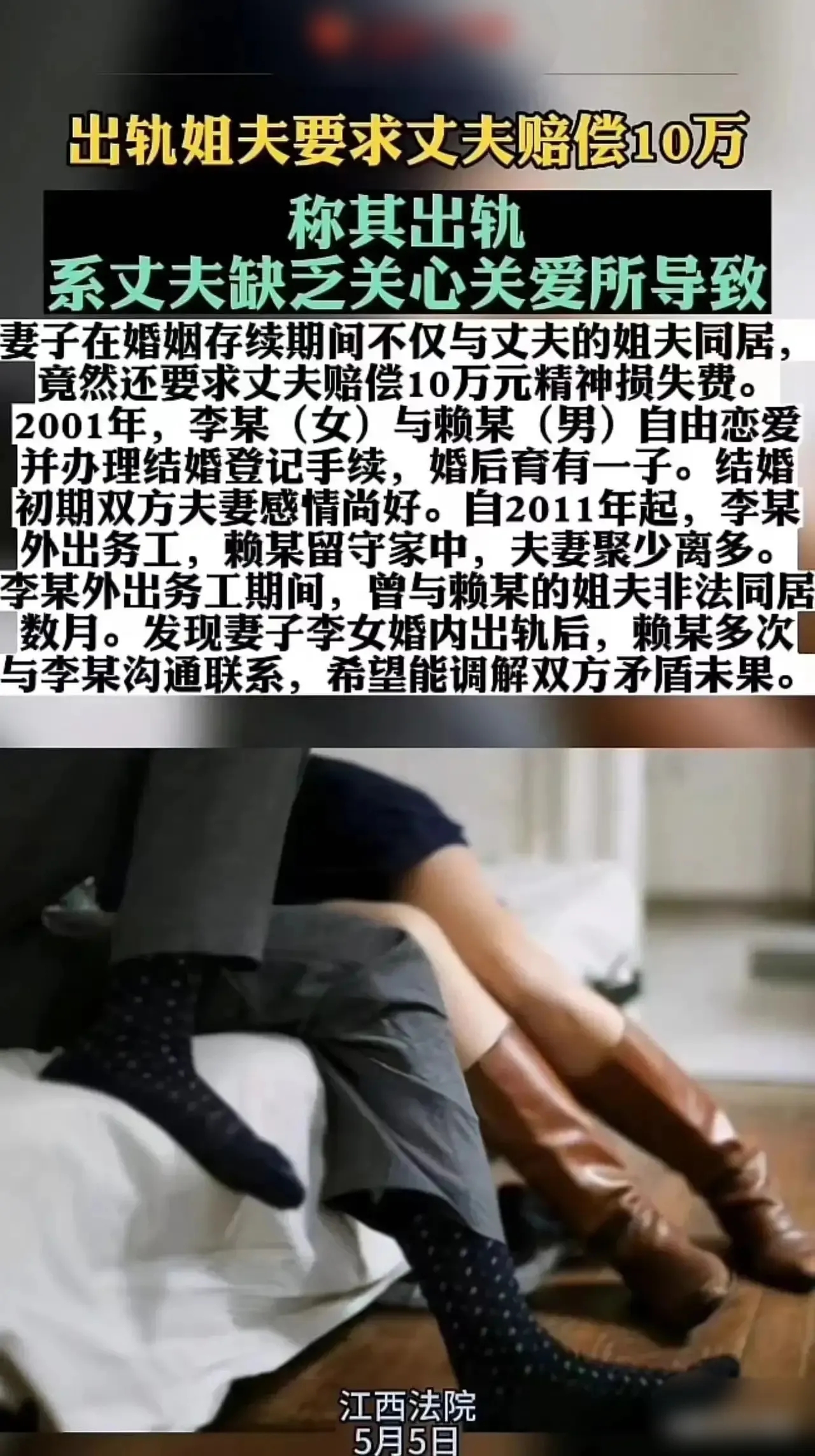 江西赣州,李丽出轨丈夫的姐夫,被丈夫发现后苦苦哀求,可李丽却拒绝与丈夫共同生活,分居3年后,李丽主动起诉离婚,还要求丈夫赔偿10万元精神损失费:都怪你不顾家庭责任,缺乏关心关爱!