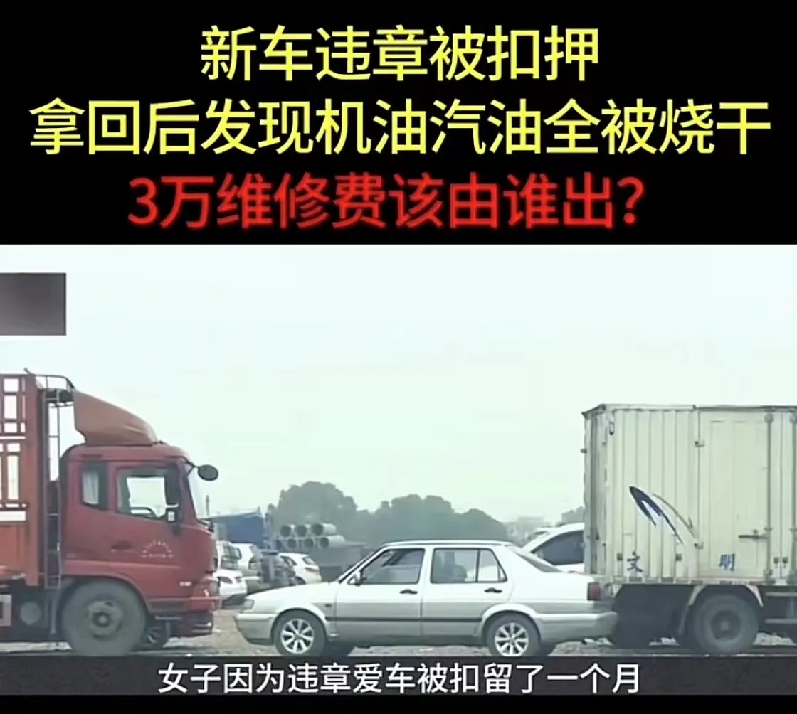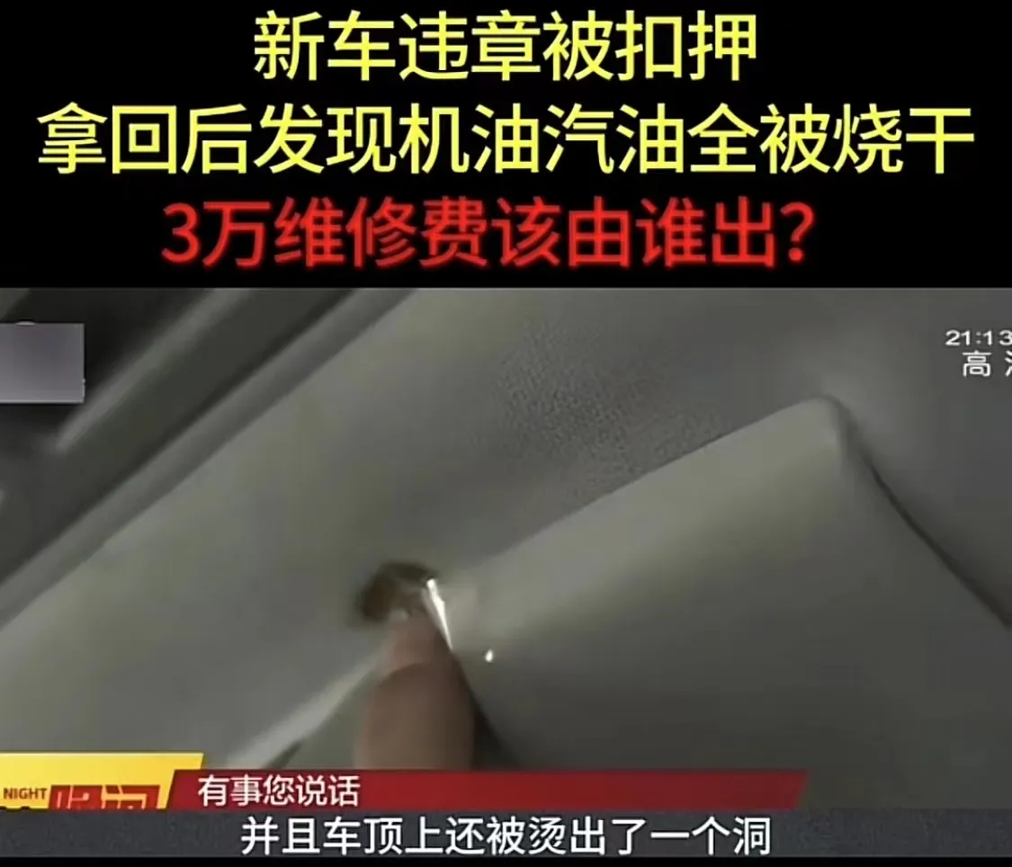 湖南长沙,鲁女士新车因违章被交警扣押,扣车时油箱是满的,谁知等一个月后她去提车时,竟发现一箱油几乎被用光,发动机也将要报废,车顶内饰还被烟头烧出一个洞,爱车被扣期间,到底经历了些什么?