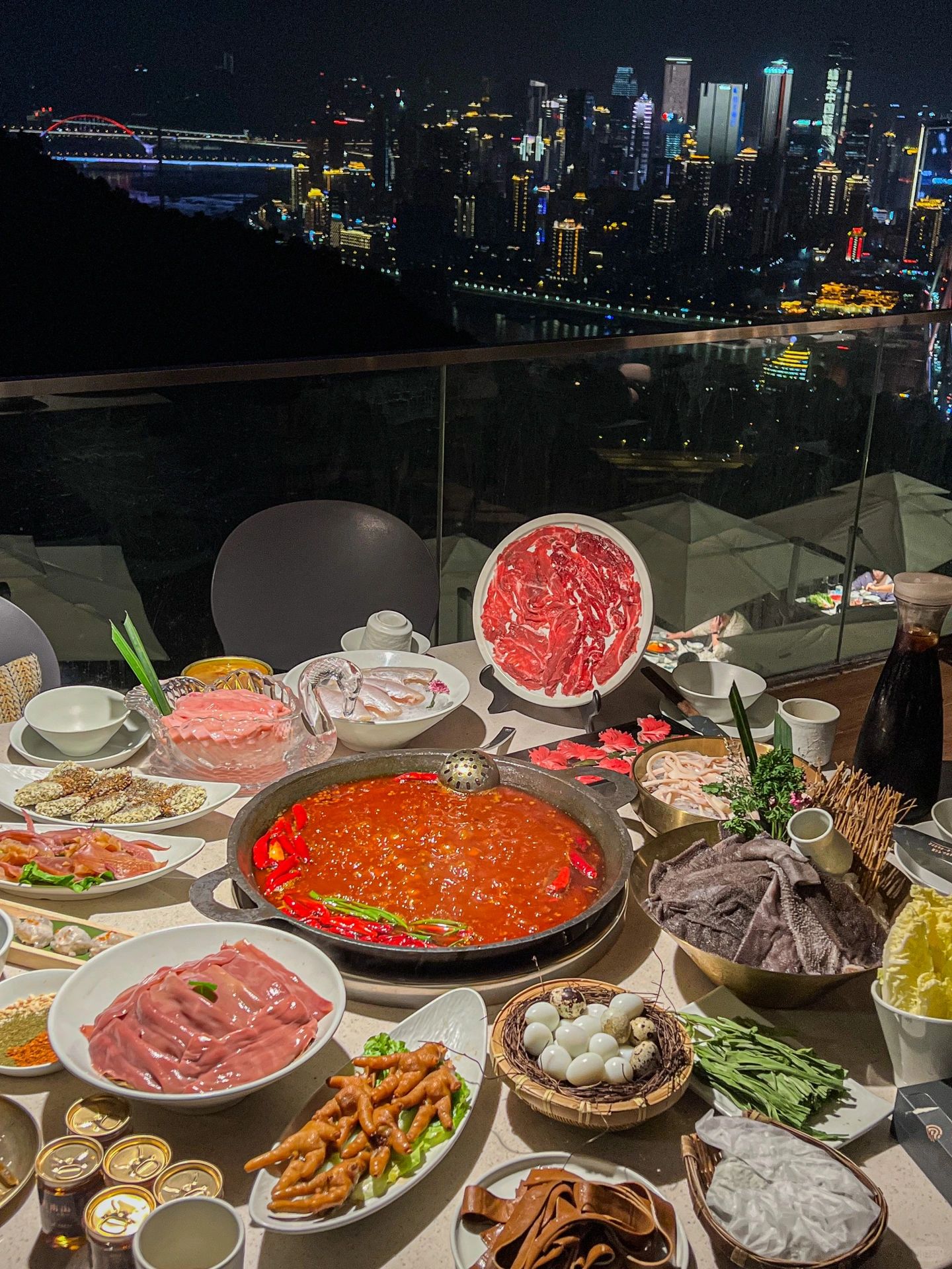 一盏陶炉、一张小桌,三五好友, 烹煮的不只是一壶清茶, 更是冬日的仪式感 当水雾蒸腾缭绕,炭火噼啪作响 雅意和暖意不都有了? 一盏陶炉、一碟干果 一杯热气腾腾的香茶 不仅能温暖身心 更能带来冬日的慰籍与宁静 冬日围炉 煮茶暖心 看南山烟雾缭绕的壮阔 感受露台上的草木清香 任时光静静流淌 当下即圆满 夜幕降临 看看重庆的夜景🌃 吃着地道老火锅🔥 真的很幸福 在家人的欢声笑语里度过一晚 店名:去南山夜景火锅