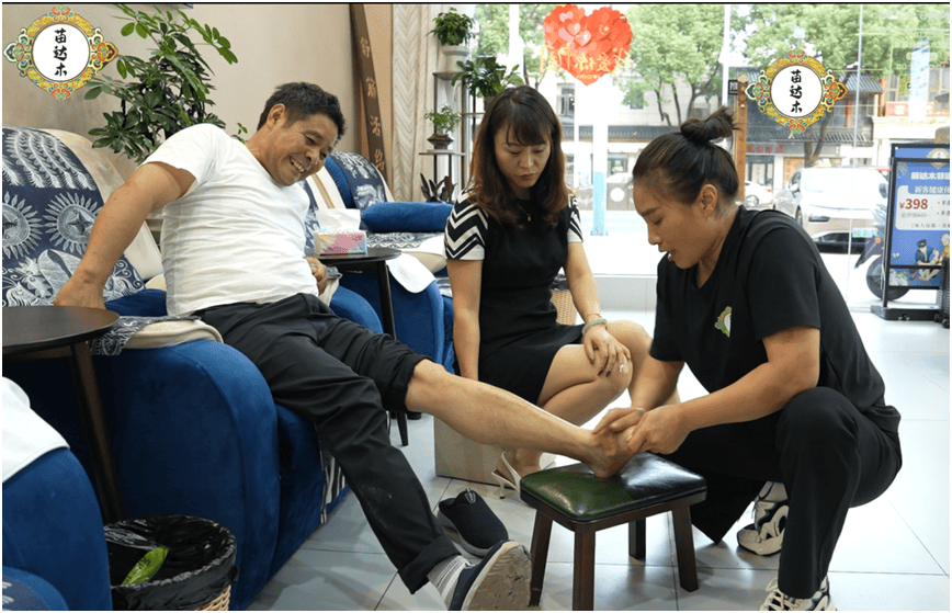 2024年4月,旅程结束的疲惫时刻,张家界机场里一声亲切的招呼——“苗达木泡脚去去乏嘛”,吸引了芮菲母女的目光。在苗达木的店里,她亲眼见证了传统苗达木的奇妙:感冒旅客用苗达木足浴包泡脚后嗓音由沙哑转为清亮,素不相识的大哥经过店员免费用苗达木万金油和苗达木筋骨消痛贴后腰痛大为缓解。这一幕幕,在她心中种下了一颗好奇与信任的种子。