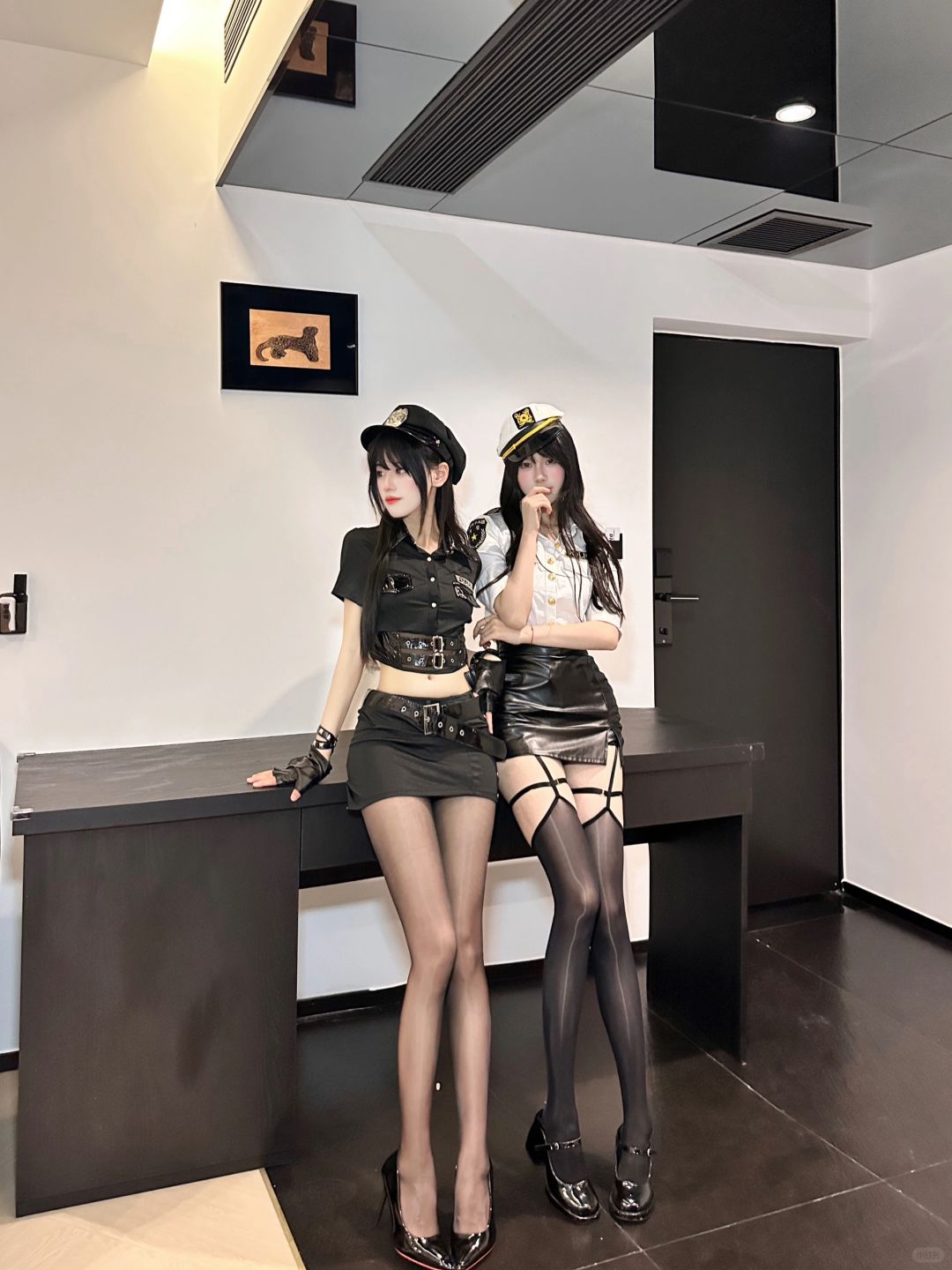 和朋友一起穿黑白小警官👮♀️ 尊嘟好飒 嘿嘿