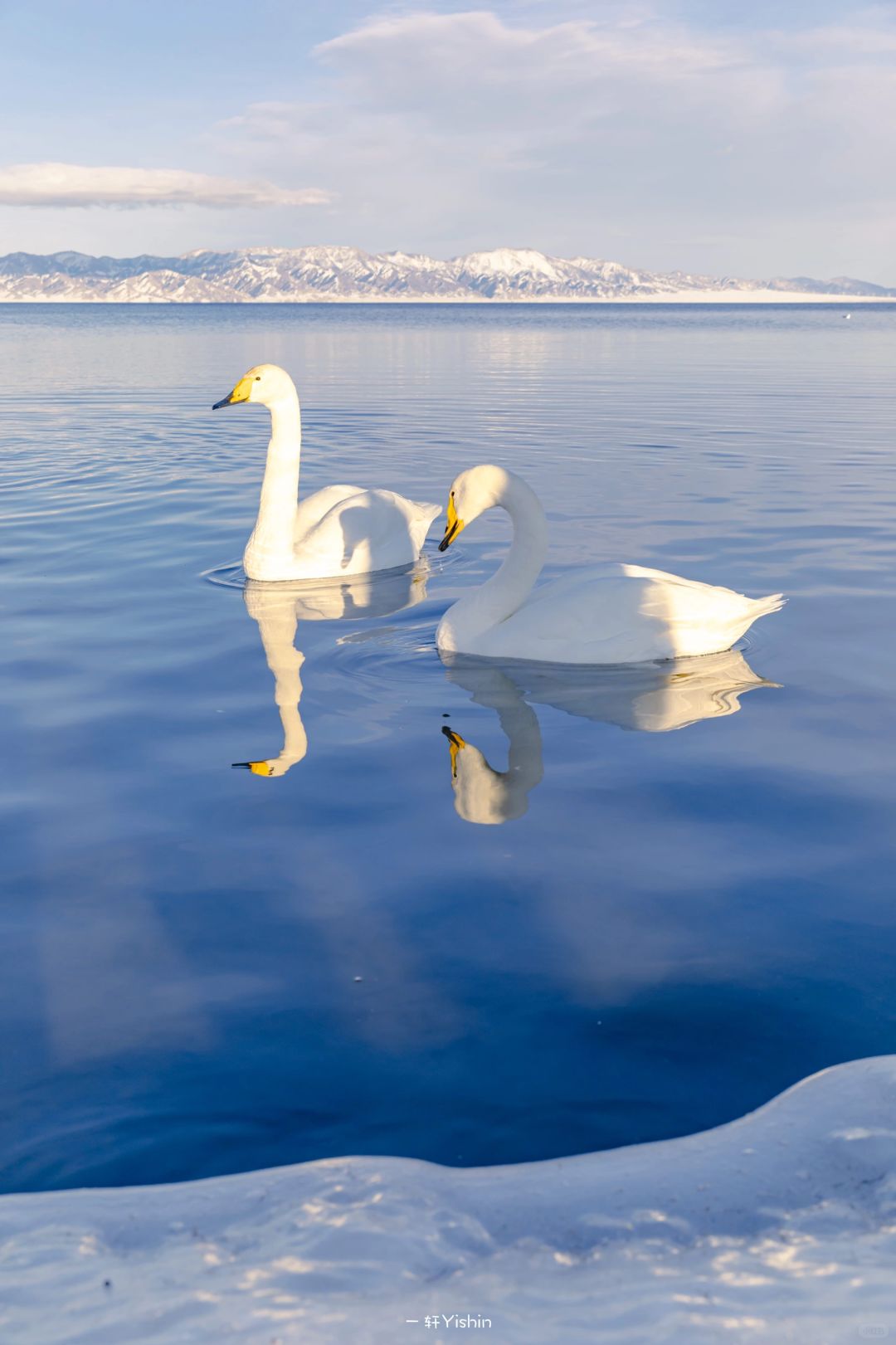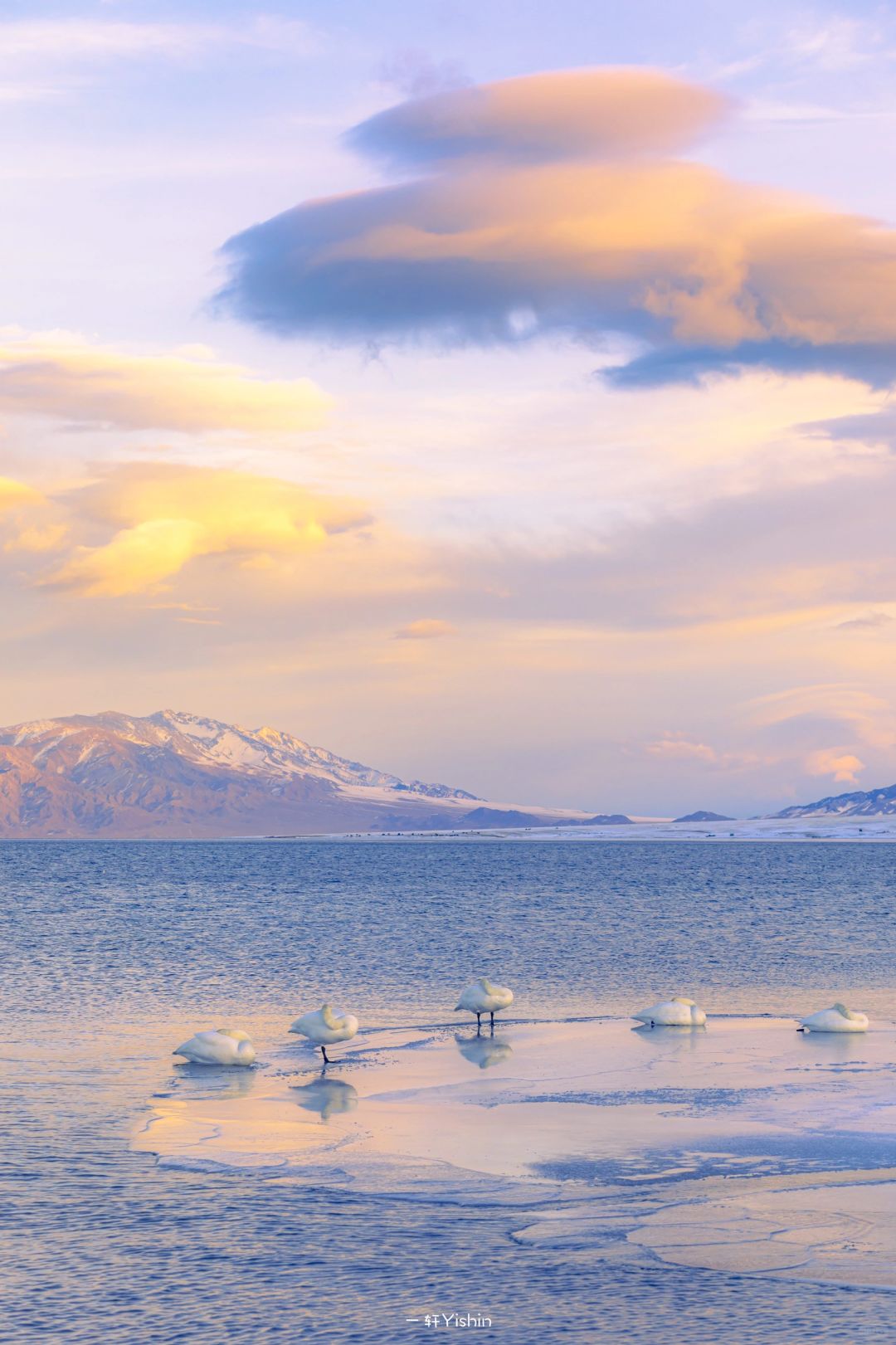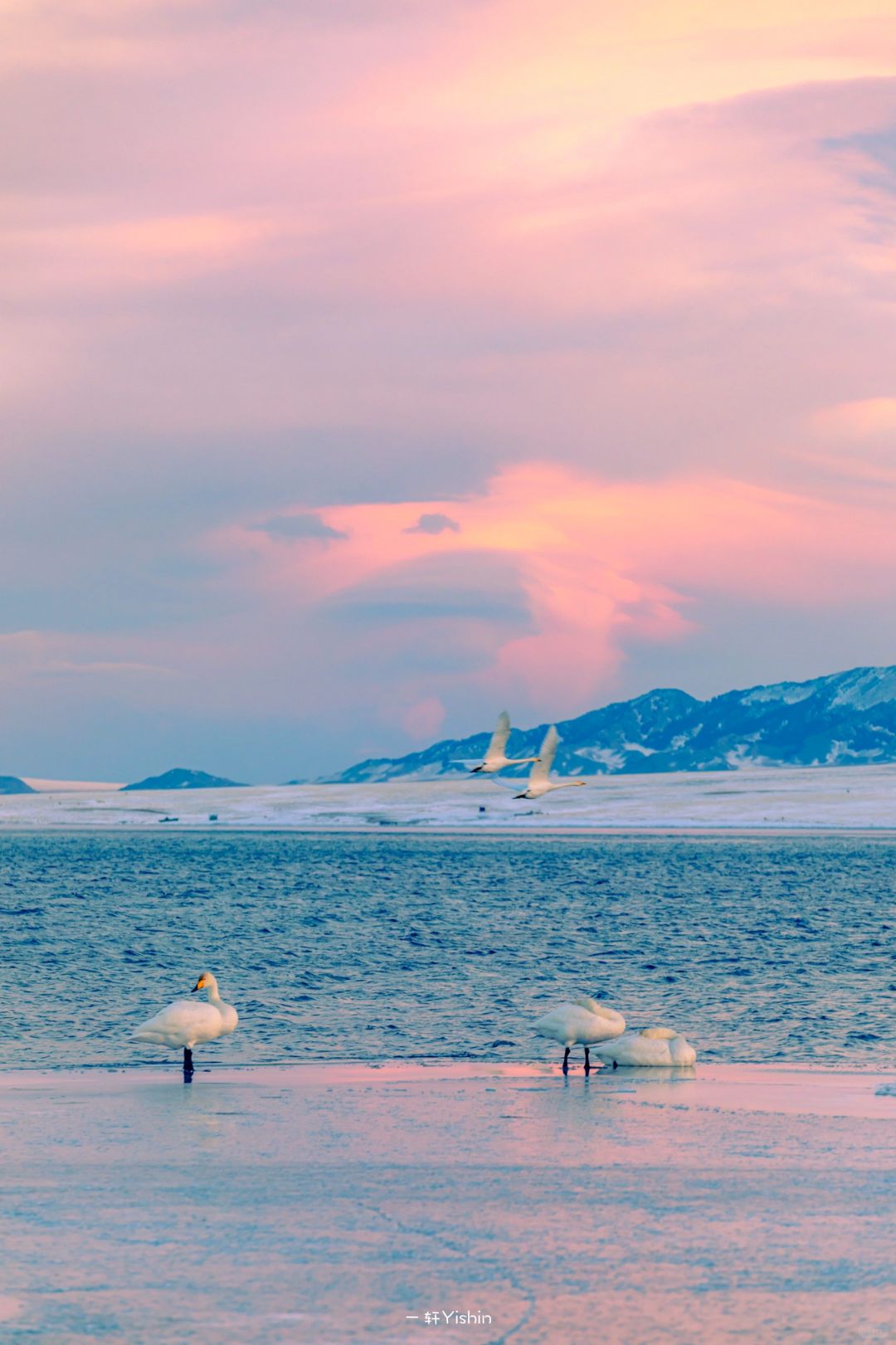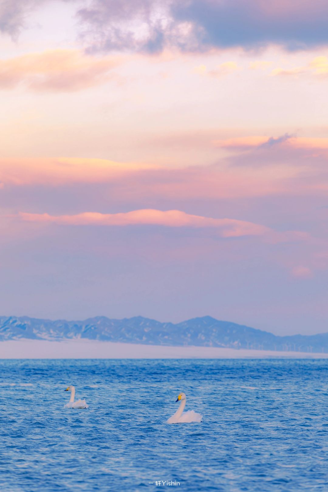 冬季的赛里木湖人很少,所以特别好拍照📷,有两个时间点特别出片:日出日落前后!特别容易出现紫色的霞光,倒映在湖面上,和远处的雪山,湖边的天鹅🦢,构成一幅美丽的画面!