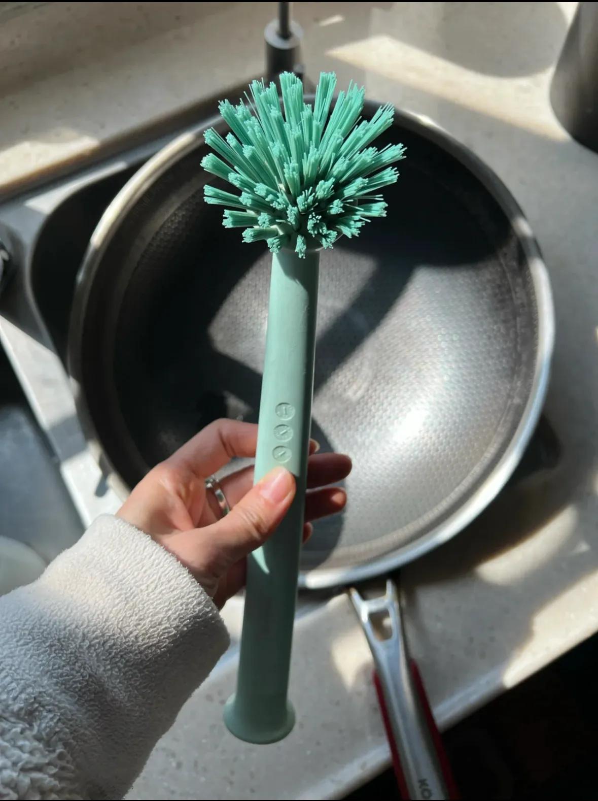 使用注意:这刷子的刷毛有点硬,用的时候可能会把锅具刮花。还有那个洗洁精储藏盒,里面的洗洁精快用完的时候,就怎么都挤不出来啦。