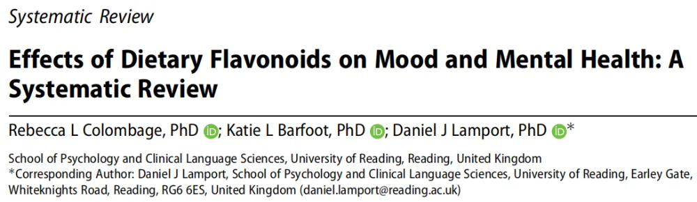 COLOMBAGE R L, BARFOOT K L, LAMPORT D J. Effects of dietary flavonoids on mood and mental health: a systematic review[J]. Nutr Rev, 2025: nuaf188. DOI: 10.1093/nutrit/nuaf188.