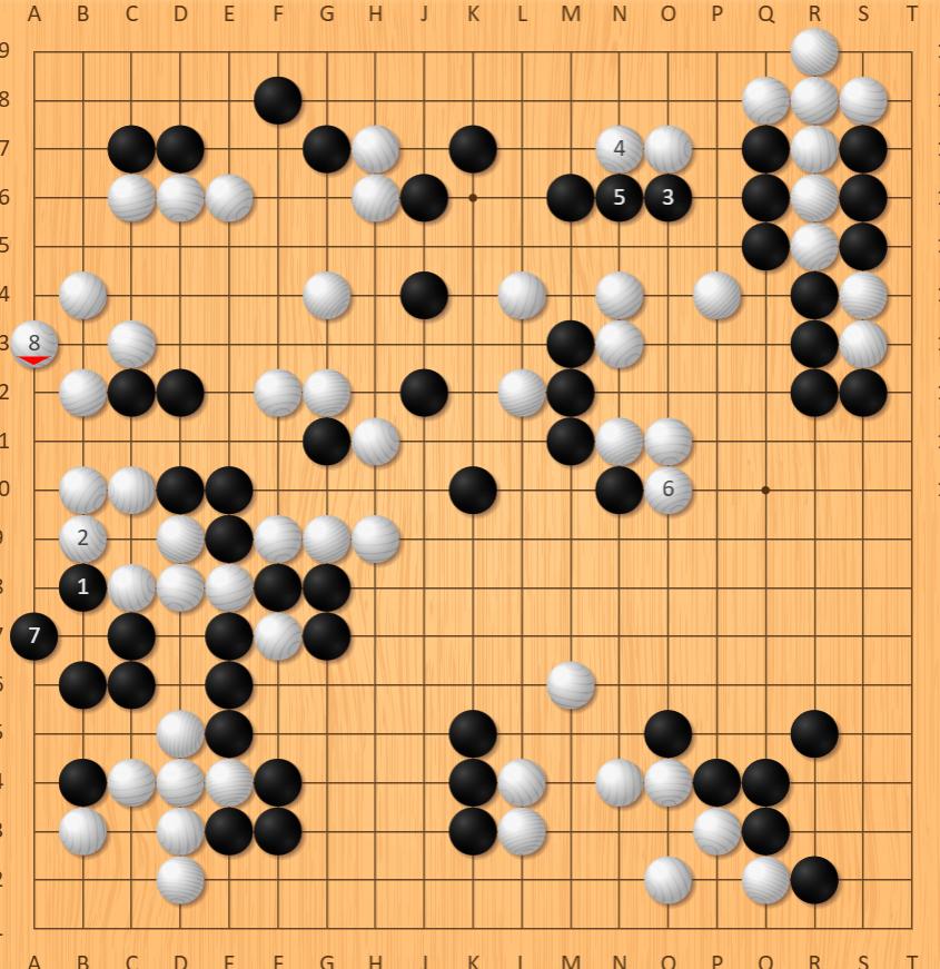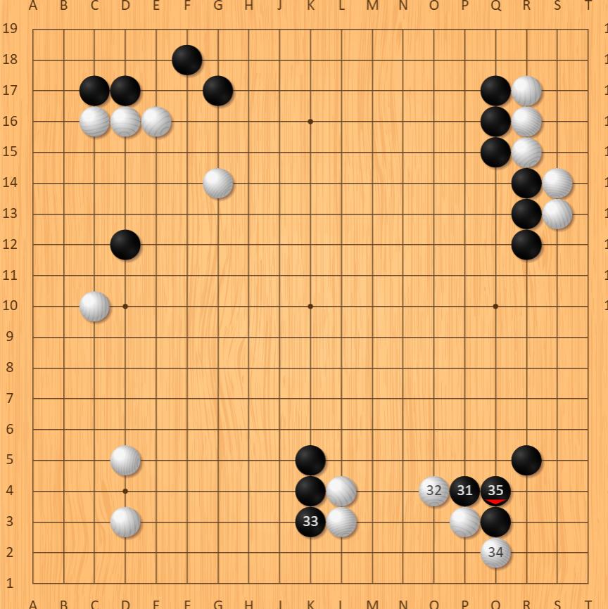 此时朴廷桓若集中火力猛攻右上(图1),本可收割中腹势力锁定胜局,却错失关键胜招。廖元赫乘胜追击,稳步将中下与中腹势力转化为实地,彻底锁定优势。深知翻盘无望的朴廷桓并未恋战,坦然投子认负。(1.28完)