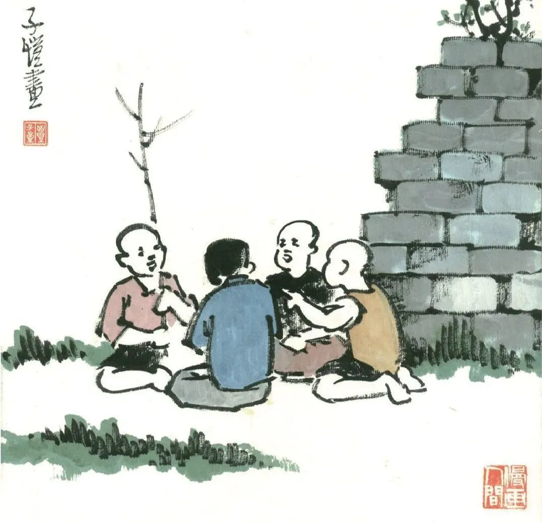 17丰子恺毕业前不久,1918年秋天,四十岁的李叔同把一切书籍字画衣服分赠给朋友学生及校工,在虎跑寺出家,法名弘一。后来,李叔同的好几位学生也遁入空门。