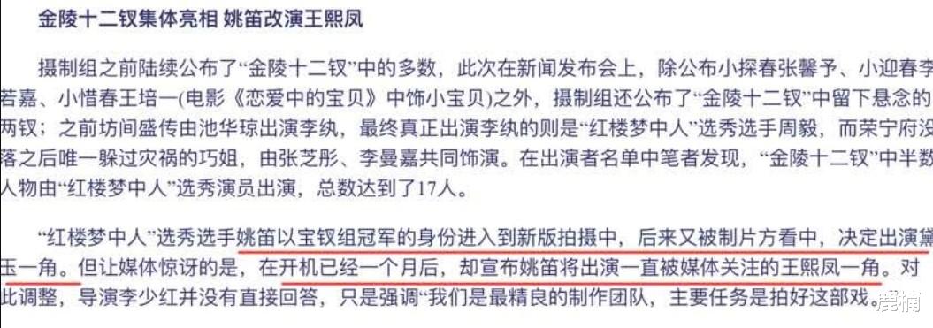 可是在开机前换演第一女主林黛玉,后来又被告知由她饰演王熙凤,因此招致不少质疑。