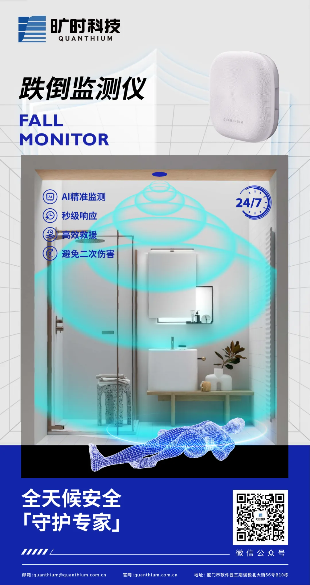 旷时科技跌倒监测仪是专为智慧养老研发的一款非接触式、无需穿戴的室内人员跌倒监测产品,可准确识别人员跌倒,及时发出报警,连接民政部门、社区呼叫中心等,自动通知指定人员,减少人员因跌倒未及时获得救助造成的伤害。具备IOT平台、时在守护智慧康养预警平台、子女端小程序、管理端小程序等完善配套设施,更全面守护长者安全。