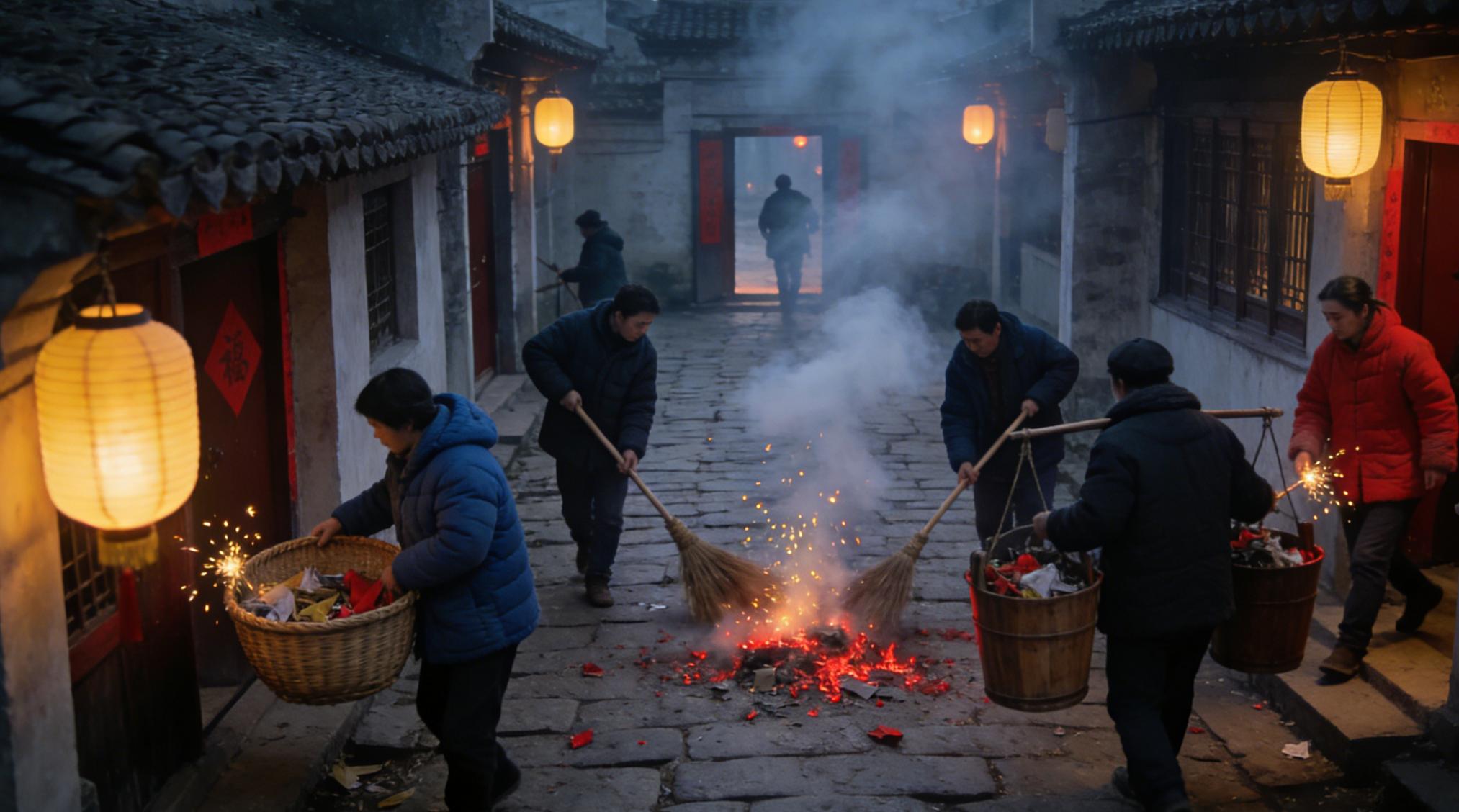 首先是送穷。天还没亮,各家各户就要起床打扫卫生,把从除夕到初四积攒下来的垃圾统统清理出去。这可不是简单的大扫除,而是一种象征性的仪式——把"穷气"赶出家门。《岁时琐事》里记载,初五之前的各种禁忌,到这天就可以解除了。有些地方的人们在倒垃圾的时候还要放鞭炮,一边放一边喊着吉利话,场面相当热闹。