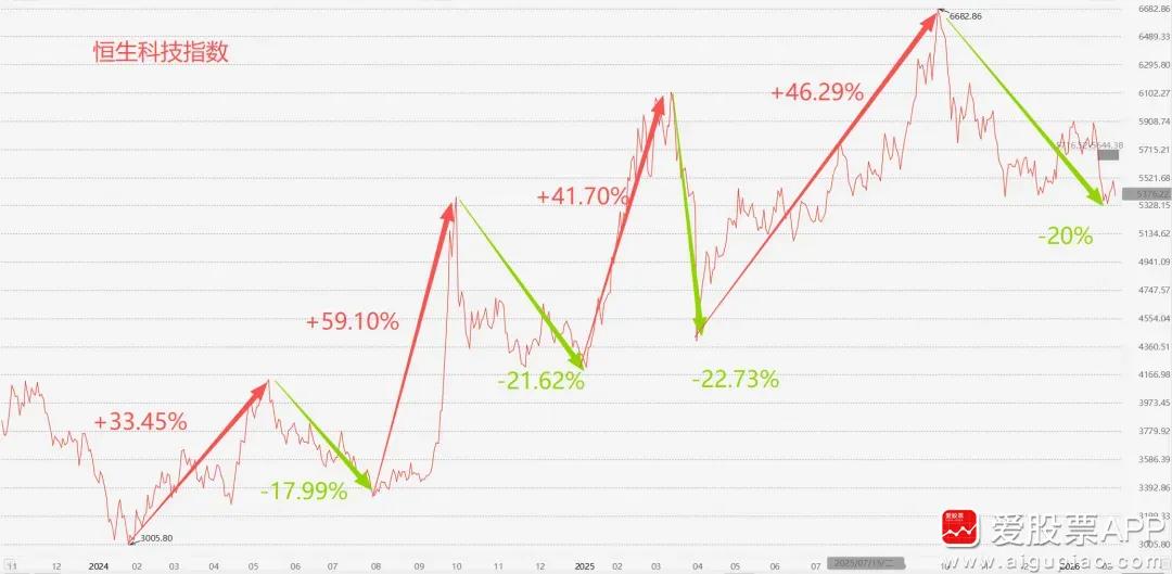 但港股弹性非常大,经常孕育巨大的机会。2024年以来,港股有4次20%左右“技术性熊市”的回撤,但随后的暴力反弹,涨幅在40%~60%,非常的猛!所以对港股真的不需要太悲观。