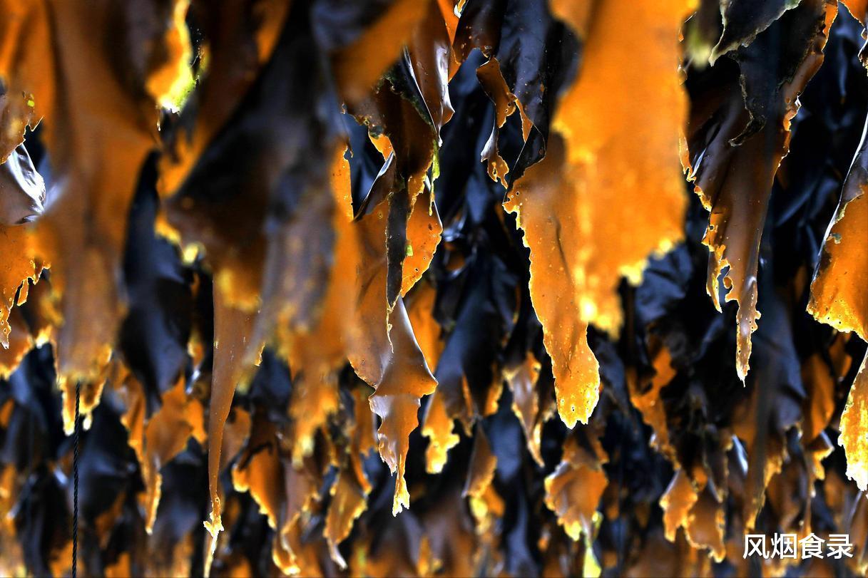 最妙是晒法,非得用竹垫子三晒三洗,晒出的干海带泛着琥珀光,泡开像绸缎滑手。