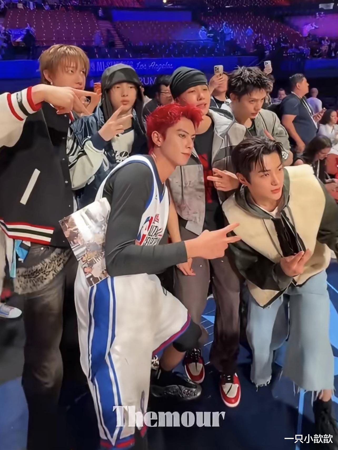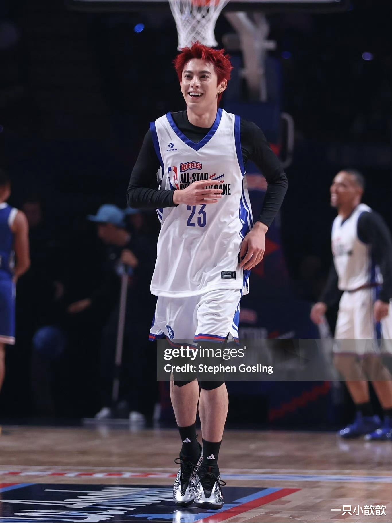 当全明星周末的激情碰撞上演,演员与偶像的次元壁就在此刻轰然破碎,王鹤棣以标志性的红发造型第三次亮相NBA名人赛,却在赛前互动环节,和韩国男团Cortis联手呈上了一记“破次元”的梦幻联动。
