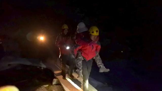 时间一分一秒流逝,寒夜漫长而煎熬。经过近6个小时的艰苦搜寻,次日1时10分,我们终于在一处隐蔽的山沟内,发现了瑟瑟发抖的3名被困人员。此时受伤老人蜷缩在地上,因寒冷和伤痛面色苍白,左脚脚踝肿胀明显,已经无法动弹。救援人员立刻上前为老人披上保暖衣物,对扭伤的左脚进行紧急固定,小心翼翼将老人抬上救援担架,随后轮流抬运、接力护送,向着山下艰难返程。