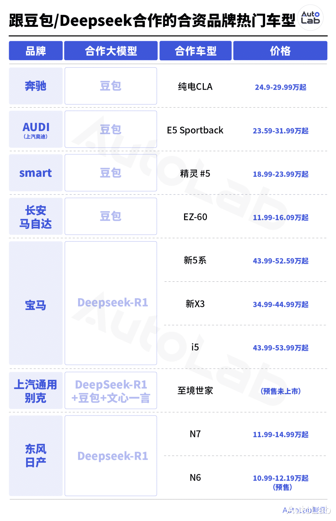 但自从豆包和DeepSeek异军突起,并形成极高的国民度之后,合资车的语音助手简直如同忽遇天降神兵,新车纷纷开始接入豆包或者DeepSeek。